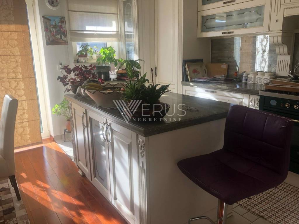 The furniture was made to measure, and the highest quality materials were used, such as shelves made of Istrian beam, marble, Brac stone, and teak parquet.