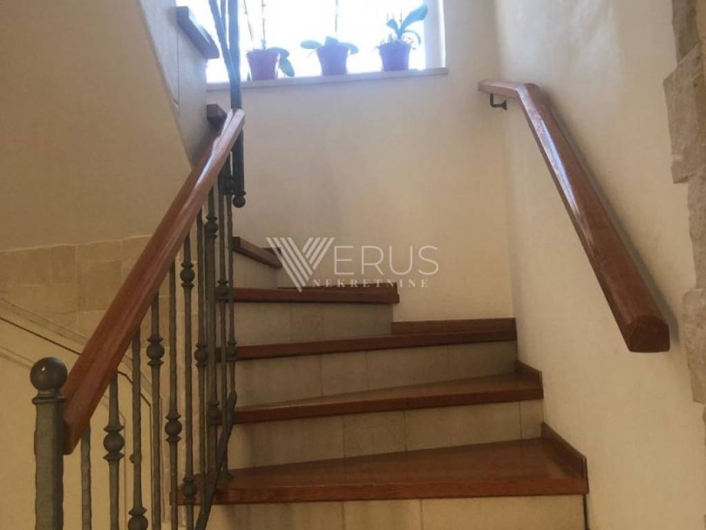 The house consists of a ground floor, where there is a study and a bedroom; a spacious living room separated from the kitchen and dining room by a large vault made of Brac stone; a bathroom; and a laundry room.