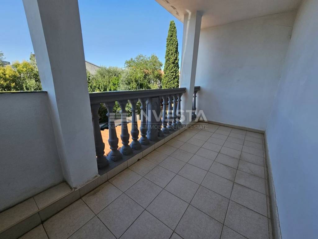 On the ground floor, there is a large yard and garage with a separate entrance from the public road, but they can also be accessed directly from the apartment via an external staircase that connects the yard and the apartment.