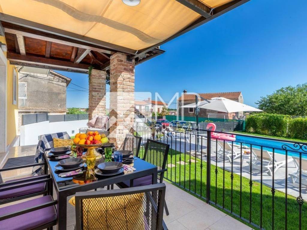In a quiet location in the town of Jadreški, this newly renovated stone house with a living area of ​​140m2 is located, distributed over the ground floor and first floor.