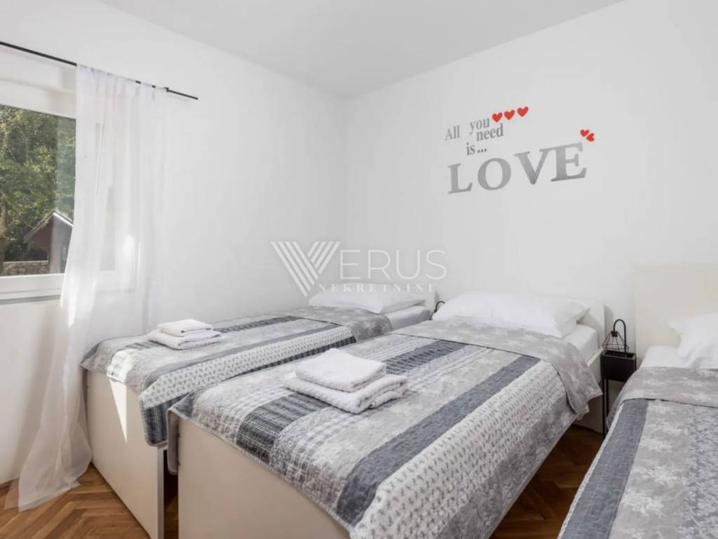 And for sale is a beautiful detached holiday house on the island of Krk, in the quiet town of Kornić. The house covers 250 m², distributed through the basement, ground floor, first floor, and high attic, and is surrounded by a landscaped and fenced garden with a swimming pool.