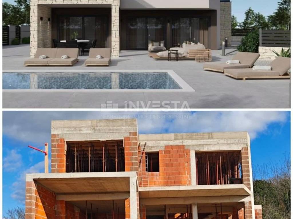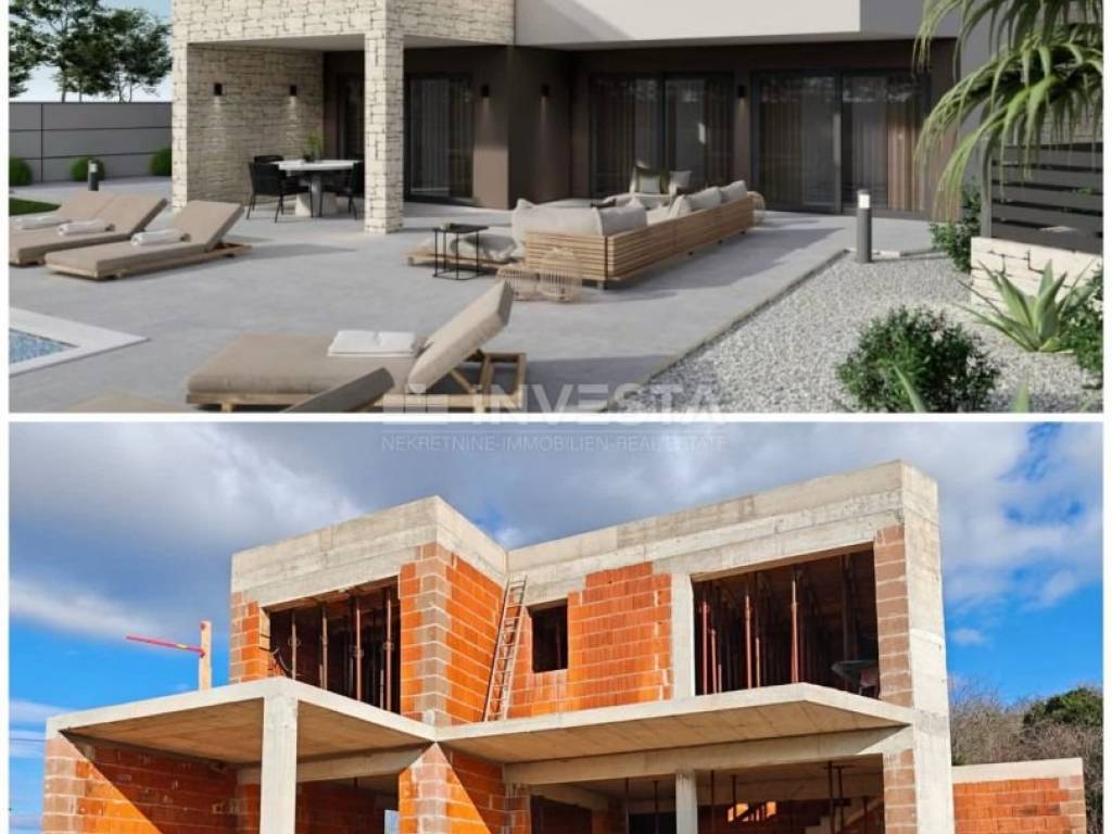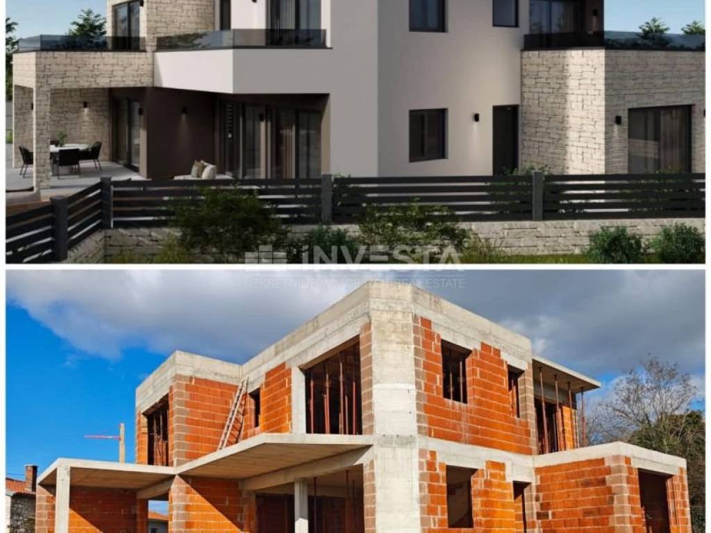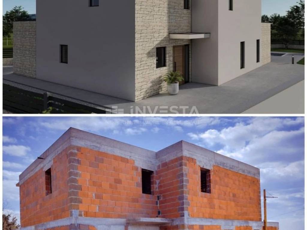 In a village with only two houses, the construction of an urban villa with an area of 235 m² on a plot of 1400 m² has begun.