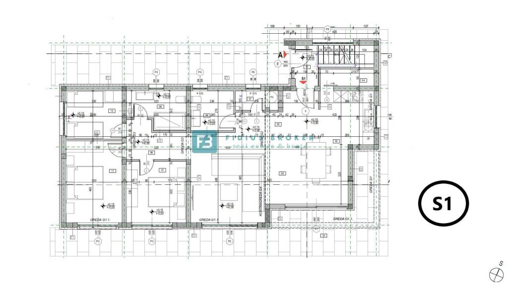 Apartment S1 with a net usable area of ​​126.41 m2 + garden of 123 m2 is located on the ground floor and consists of an entrance hall with a small hallway, a living room with a kitchen and a dining room with access to a spacious semi-covered terrace of 37.69 m2 and a garden, a toilet, a bathroom, a technical room, a storage room, three bedrooms.