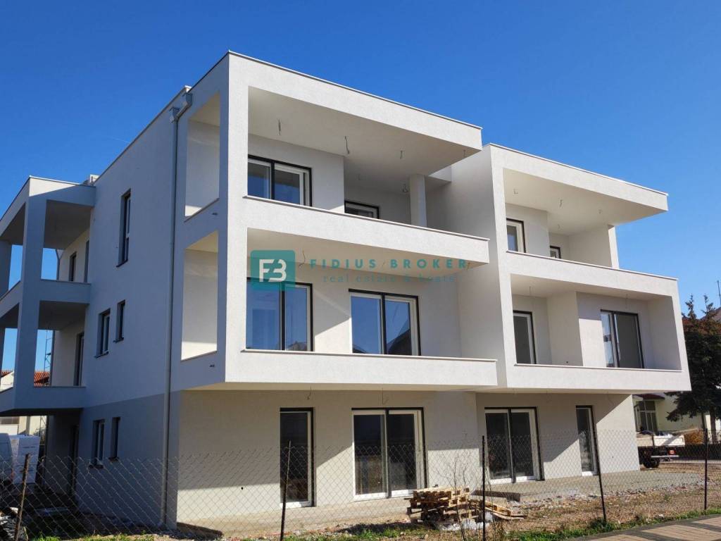 Construction of a new apartment building with a total of 8 apartments has begun. The modern-looking residential building will consist of four floors: ground floor + 1st floor + 2nd floor + roof terrace. The building will be built with quality materials according to the latest construction standards. Among the equipment we highlight: thermal facade, security entrance doors, electric roller shutters and mosquito nets, electric underfloor heating in the bathrooms, modern sanitary ware, quality floor coverings, air conditioning in all rooms, glass railings on the terraces. The apartments on the ground floor have an appropriate part of the garden. Planned completion date and move-in date - spring 2026.