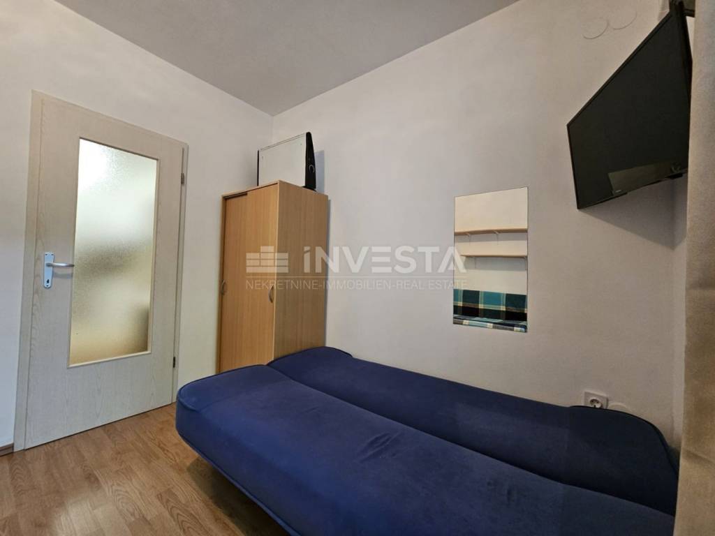 The apartment is air-conditioned, equipped with wooden and PVC joinery, and is sold furnished, ready for use. It is currently organized to accommodate up to six people – two on the sofa in the living room and four on two beds in the bedroom.