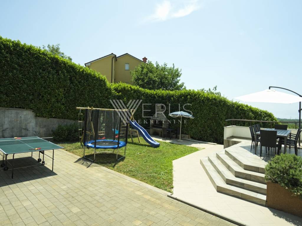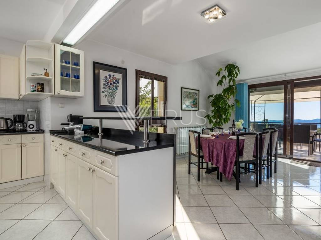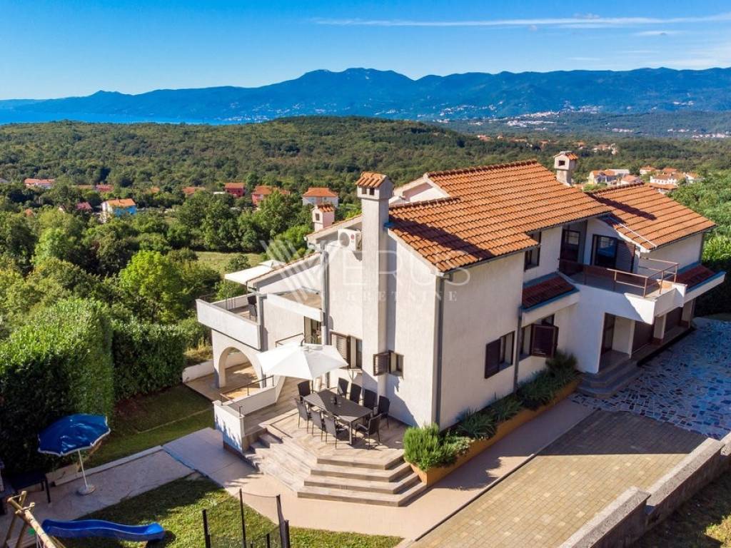 In the peaceful surroundings of Saršon, on a gentle hill that opens up a view of the sea, mountains, and the surrounding nature, this impressive villa with a swimming pool is located. The location offers a rare combination of privacy and proximity to the city—only ten minutes away from Rijeka and Opatija.