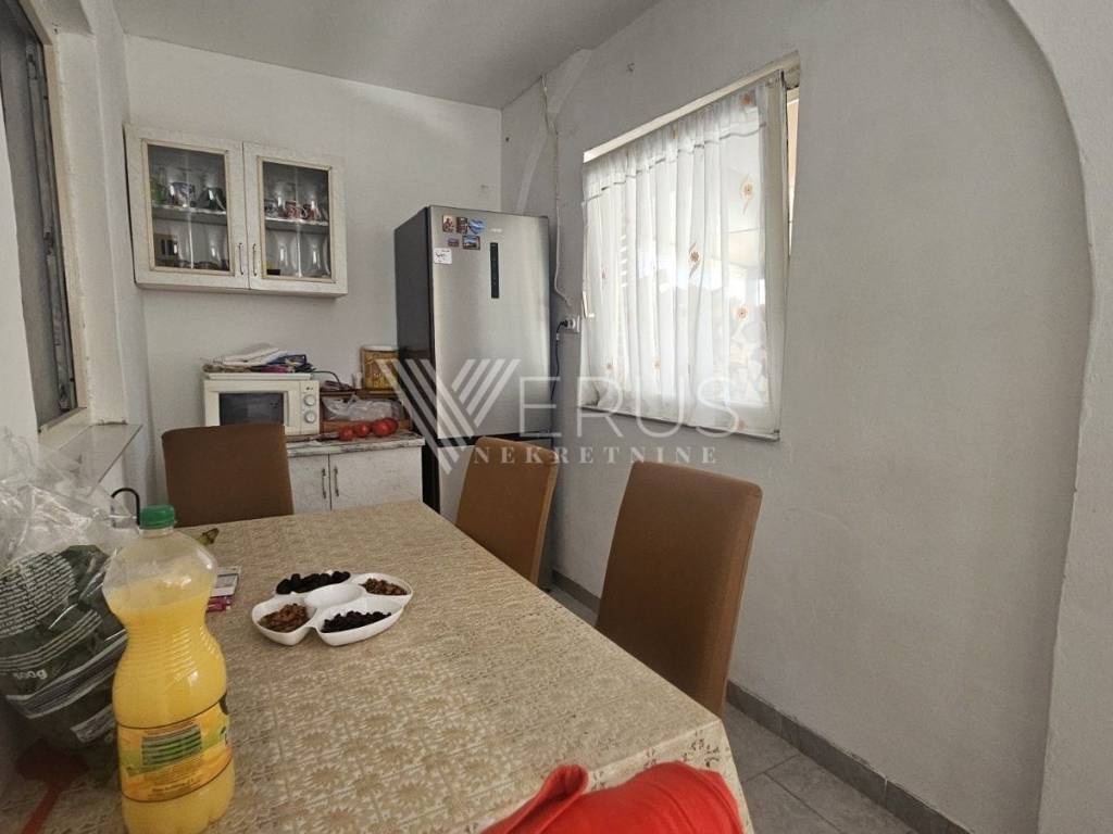 We offer a pleasant apartment in Marčelji, located on the ground floor of a smaller building, southwest orientation and a total area of 56.72 m². The apartment consists of two rooms, a living room, a bathroom and a hallway, while the indoor space has been transformed into a functional kitchen with a dining area that leads to a covered terrace, ideal for enjoyment all year round. The special feature of this property is that it has two entrances, and recently new PVC windows and doors have been installed.