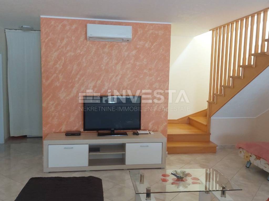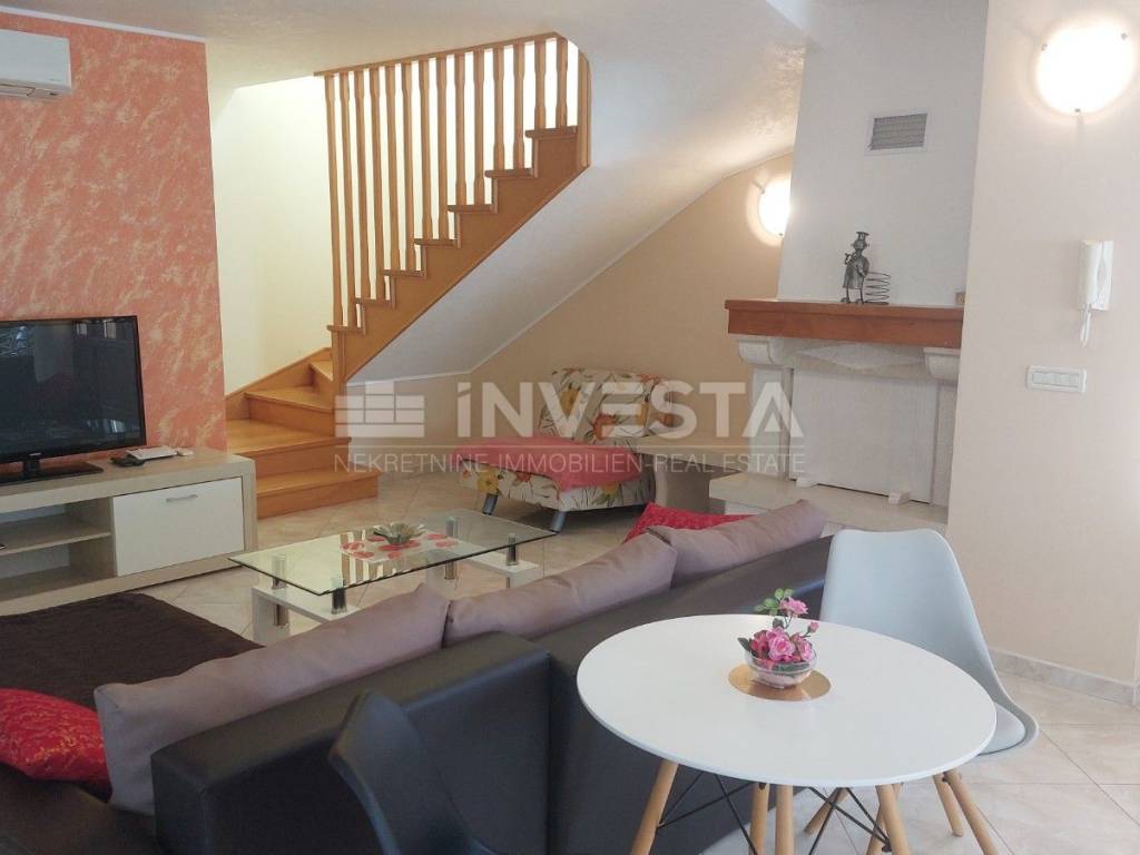 A beautiful house with a pool is for sale, offering a total living area of 140 m², situated on a landscaped plot of 593 m². The house is spread over two levels – ground floor and first floor – and is sold fully furnished.