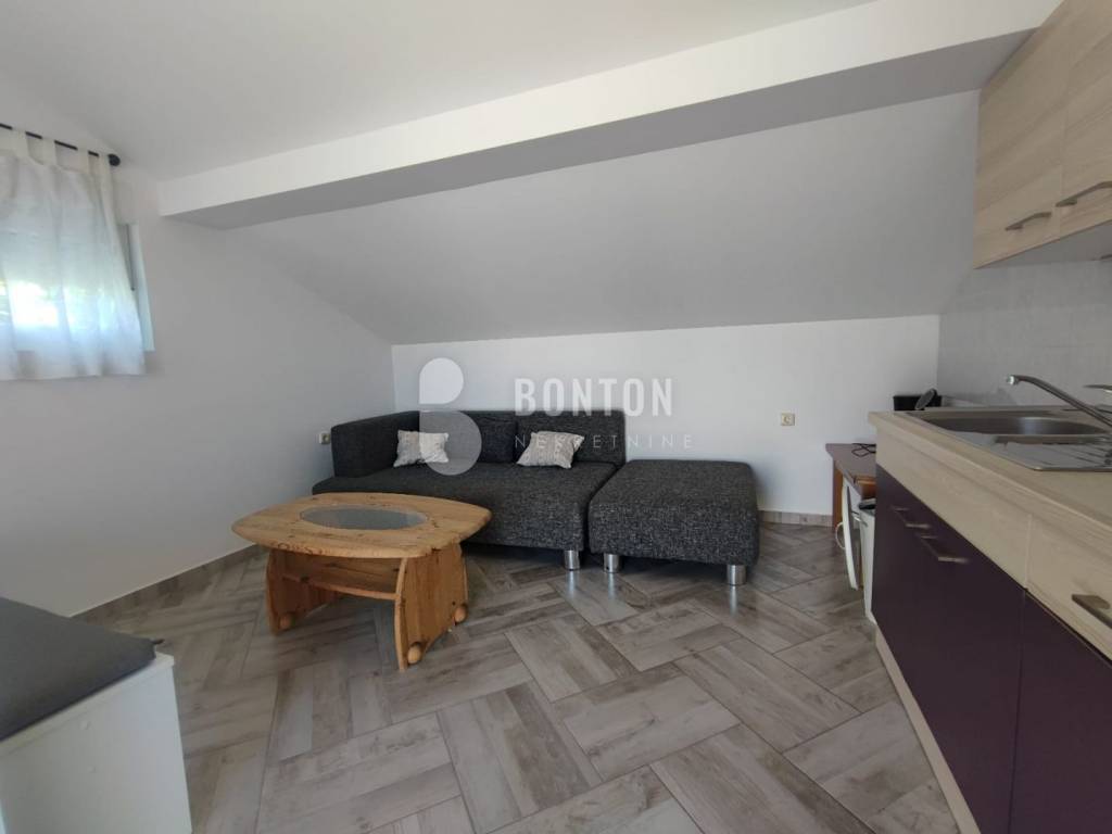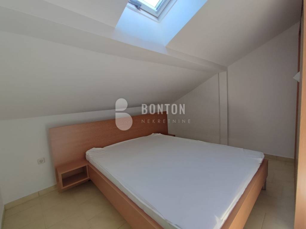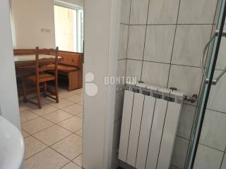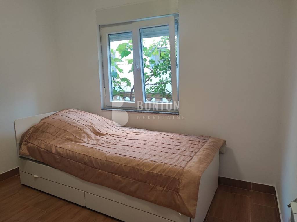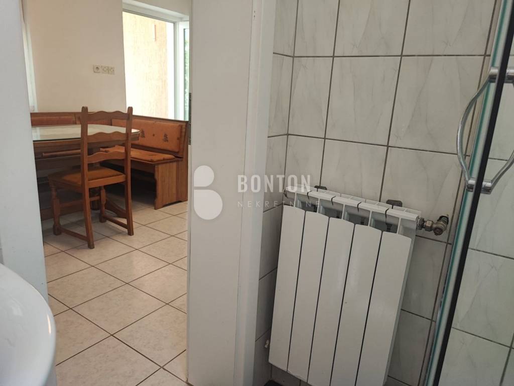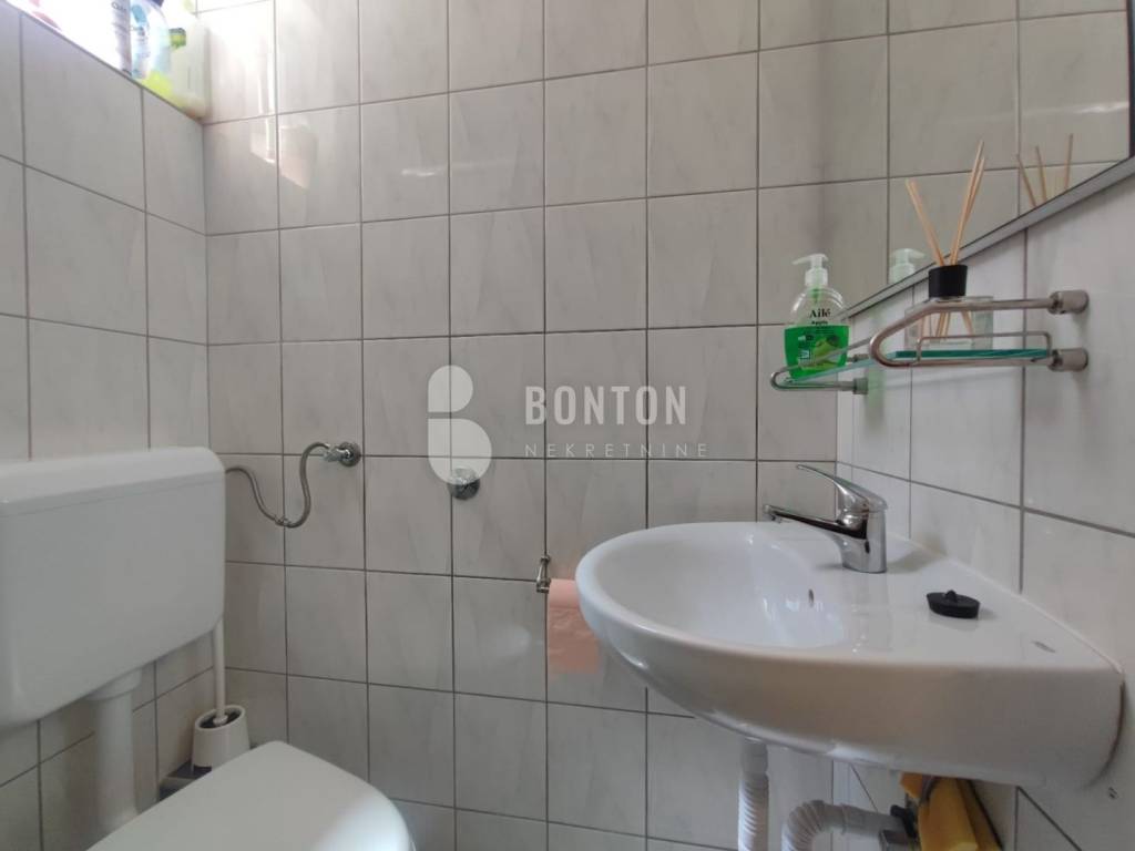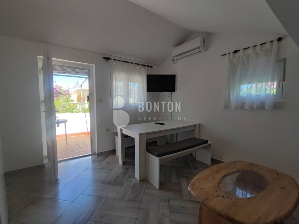 NEW ON OFFER We have a beautiful house with two apartments that include a closed garage with automatic door lift, located in the southern part of Vir Prezid. The distance from the beach is 200m. With two apartments, this house provides flexibility and privacy for multiple families or guests. Each apartment has a separate entrance and its own terrace, ensuring comfort and privacy for each tenant. The closed garage is especially useful for protecting vehicles from adverse conditions, provides additional storage space and ensures privacy because the living area is also entered through the garage itself. The house was started in 1985 and completed in 1995. On the ground floor there is a two-room apartment 72m2, two bedrooms with a bathroom, a kitchen and a dining room. The floors are tiled with ceramic and laminate. The kitchen is new. The joinery has been completely changed with a garage door and a fence. On the ground floor there is 1 air conditioner and a chimney that provides heating during the colder days.