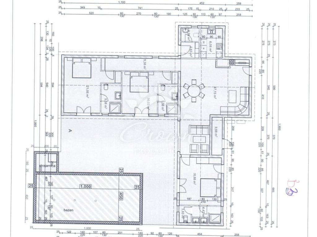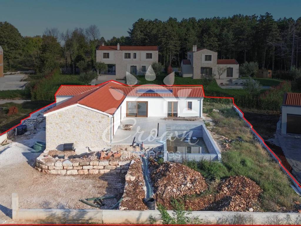 This attractive one-story villa of 166 m² combines modern design with traditional Istrian style. The stone-clad façade emphasizes the authentic Istrian character and blends perfectly into the natural surroundings. Located in a quiet neighborhood, surrounded by luxury villas and greenery, it offers complete privacy and comfort.