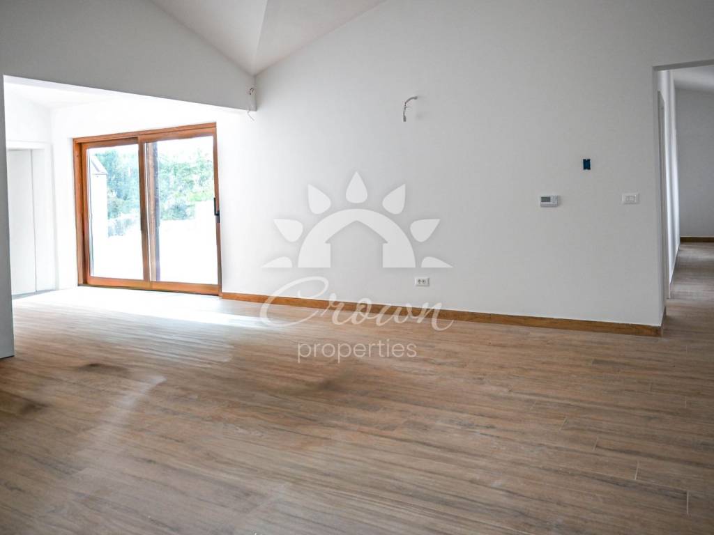 The house is equipped with a modern heating and cooling system: a heat pump provides underfloor heating throughout the entire villa, and air conditioning units are installed in all rooms. The dining area with a fireplace creates a cozy atmosphere during winter months. Solar panels are installed on the roof, increasing energy efficiency and reducing maintenance costs.