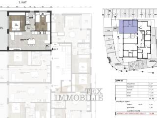 For sale is an apartment in an attractive location in Tar with a sea view from the first floor. This apartment offers a comfortable living space with a living room of 29.3 m2, a terrace of even 19.1 m2 (gross), two bedrooms and a bathroom. Heating is provided using a heat pump and electric underfloor heating, which enables comfortable and economical heating during the cold months. For cooling, the apartment is equipped with air conditioners. The building has an elevator. The apartment has two parking spaces and a storage room of 3.30 m2.