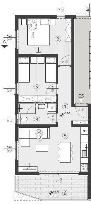 For sale is an apartment on the second floor marked "E5" consisting of: