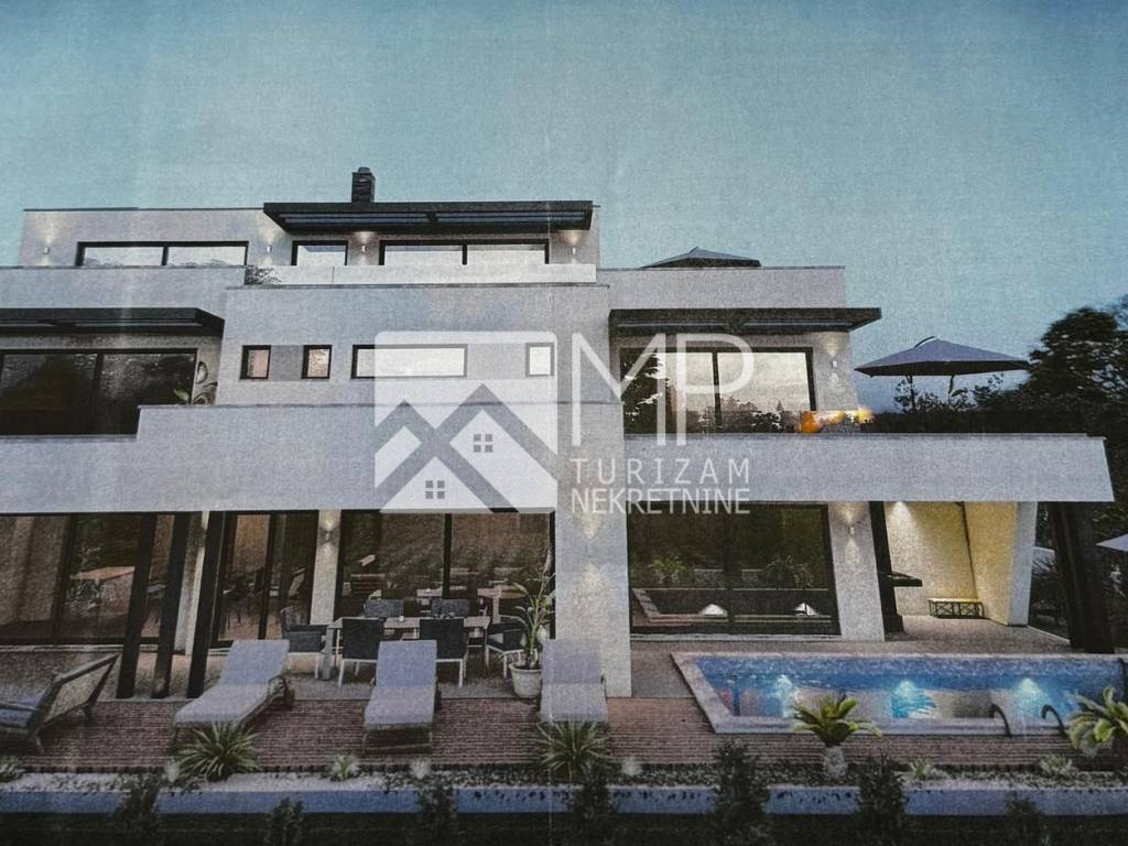 Upravo u ovom malom mjestu prodajemo zemljište sa građevinskom dozvolom za samostojeću obiteljsku kuću sa jednom stambenom jedinicom i vanjskim bazenom, koja se sastoji od prizemlja i dva kata na zemljištu površine 607m2.