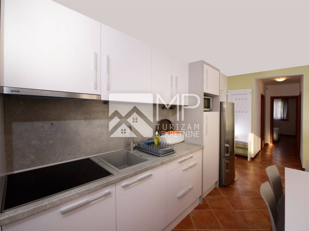 TOP LOCATION! In one of the most attractive and sought-after parts of Medulin, in the Pošesi area, there is an apartment for sale on the first floor consisting of a living room + dining room and kitchen, two bedrooms, a bathroom, and two terraces. There is one parking space in front. The apartment is fully furnished and is being sold as such. Due to its proximity to the beach, this property is very interesting to all potential buyers who want to engage in tourist rentals, or as a tourist investment. The property has all permits and proper documentation, and it is possible to purchase via credit. *There is an apartment on the ground floor with a garden in the same house for the same price.