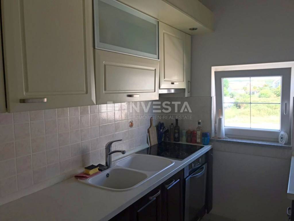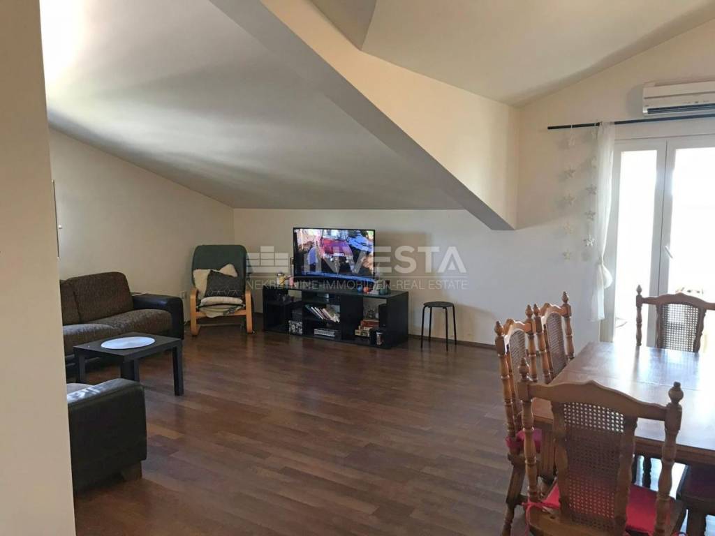 A large apartment of 91.63 m² is for sale, located on the third floor of a newer residential building. It is situated in a quiet location not far from the center of Poreč and the beaches.