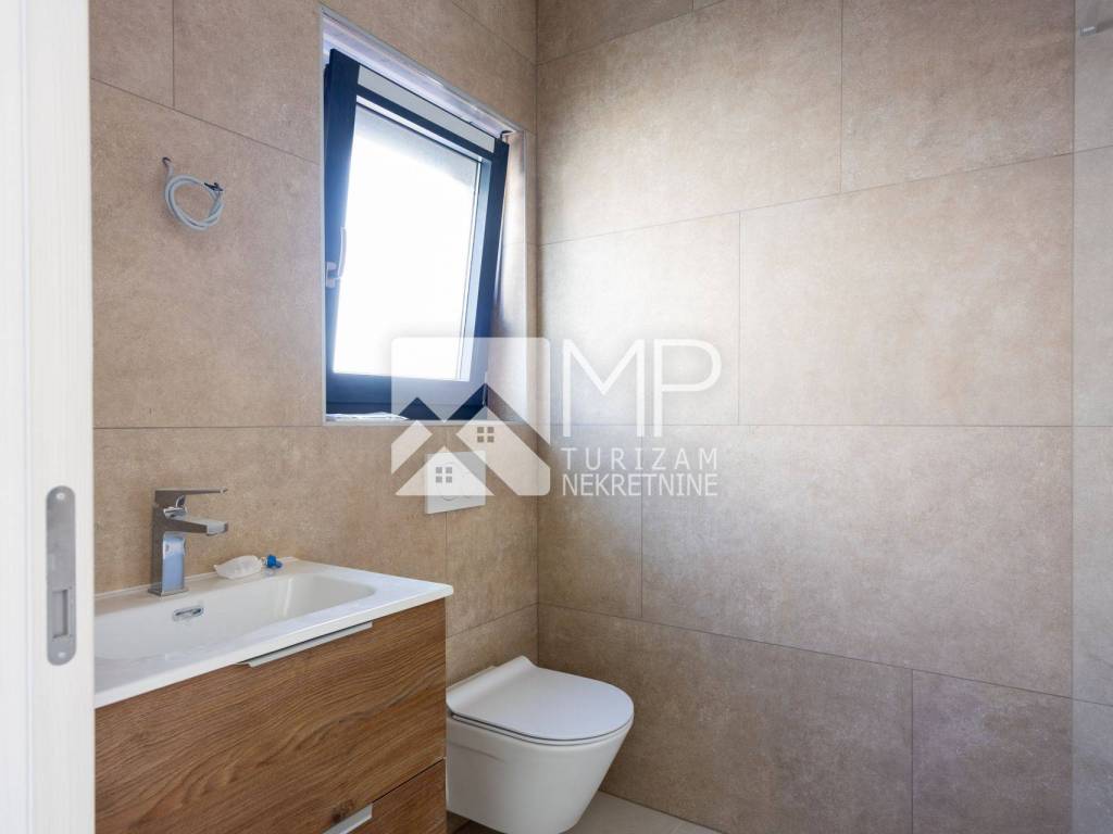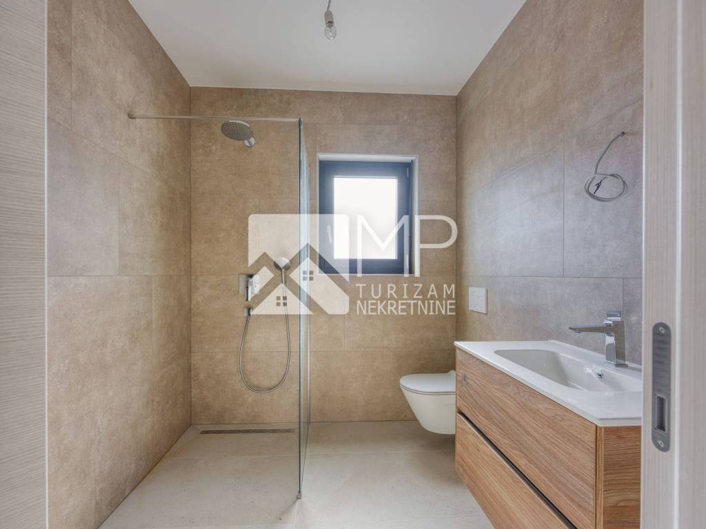 EQUIPMENT: all apartments are equipped with high-quality two-layer PVC carpentry in anthracite color with electric blinds in DB (glass walls are lift-sliding without a threshold), and mosquito nets on all windows. Heating and cooling is provided by air conditioning in the living room and bedrooms, and electric underfloor heating is provided in all rooms, except for the bedrooms. Sanitary ware and large-profile ceramics are of the highest quality, which will radiate elegance, while the bedrooms have laminate (in agreement with the investor, the option of choosing according to your own wishes). The building was built using the highest quality construction system, with superior sound and thermal insulation, while the entrance to the apartment is secured by a security door. There will also be TV and antenna connections in every room. The terrace has a 35 cm parapet and a glass fence will go on it.