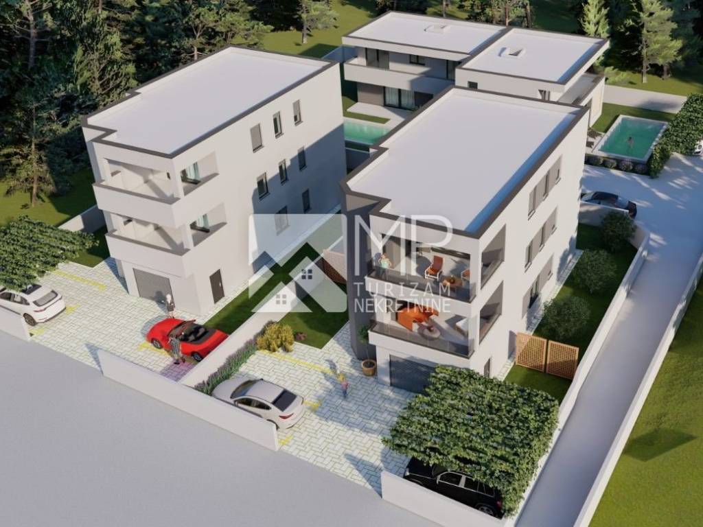 Medulin - modern new building, divided into three floors (ground floor, 1st and 2nd floor), with a total of three residential units, in fact one apartment on each floor.
