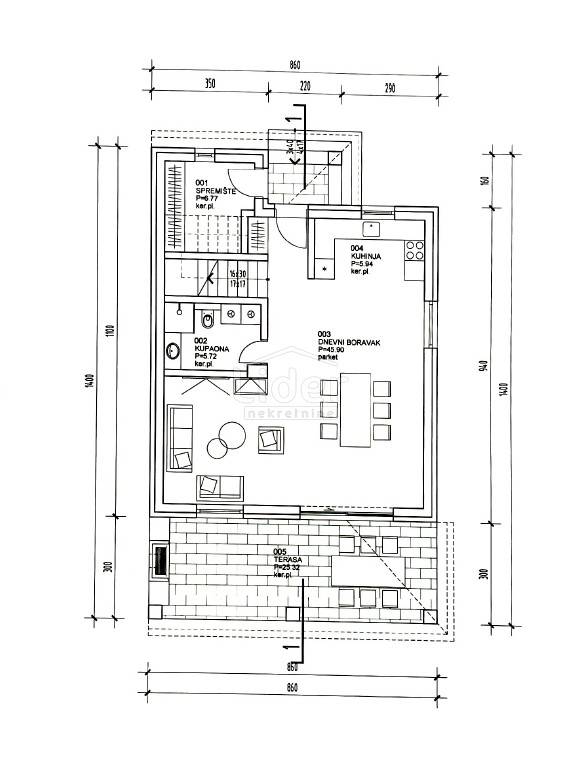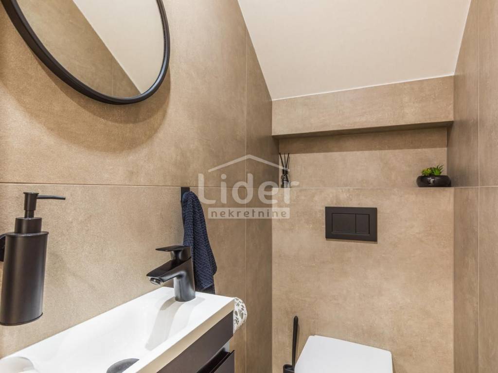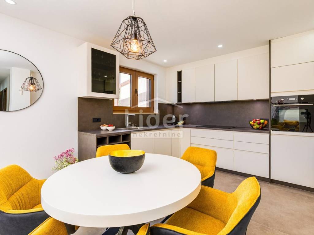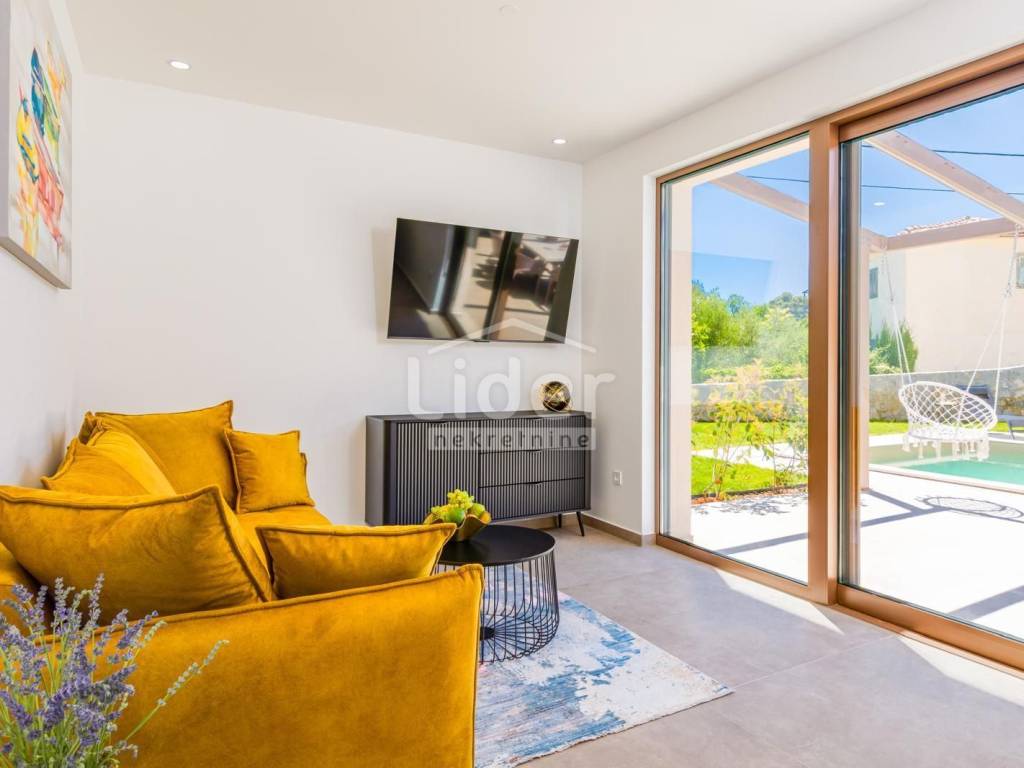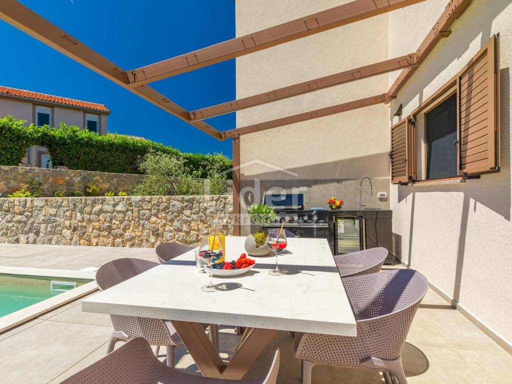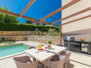 Krk – New property! We are selling a new vacation home with pool in the small cozy village Lakmartin, that is situated in the south-eastern part of the isle of Krk, between the cities Punat and Krk. This new building project has an A+ energy efficiency and is equipped with high quality plastic windows, air conditioning, underfloor heating, a fireplace, parquet floors in its bedrooms and a tamper-proof entrance door. The living area of the vacation home is about 140 square meters spreading on two floors. The two floors are connected by an internal staircase. The first floor is an open space area with a huge living room, kitchen with dining area. Furthermore there is one bedroom with bathroom and a separate toilet on the first floor. On the second floors there are two bedrooms each with a bathroom and patio door to a covered terrace. Furthermore, on the 465 square-meter-large property there are a 30 square meter pool and two parking lots. This extremely interesting property is being sold fully furnished. Choose this unique property and enjoy its comfort. Contact us with confidence. For any further information and viewing organization, please contact the Real Estate Agent at +385 91 5676553 or by e-mail on: astrid.pavesic@lider.hr