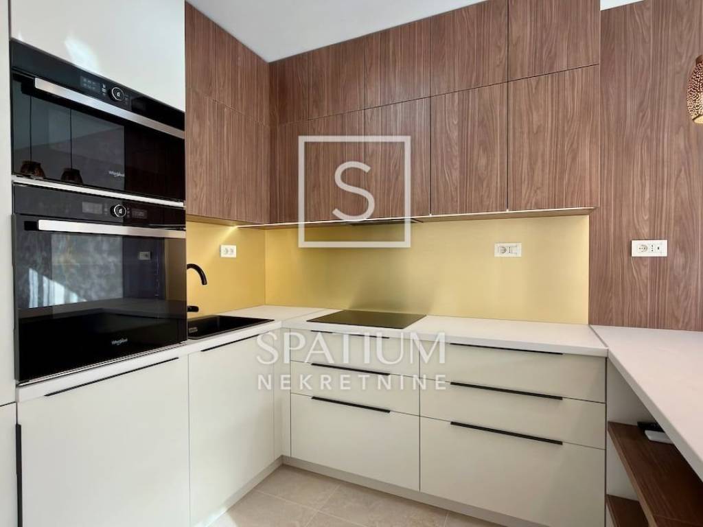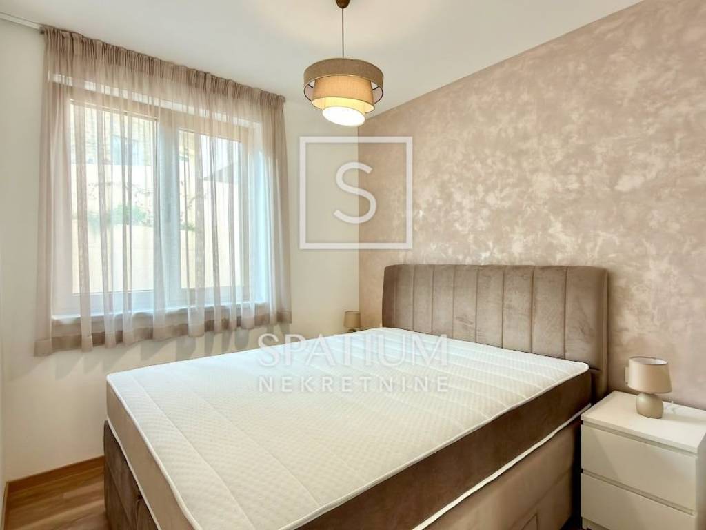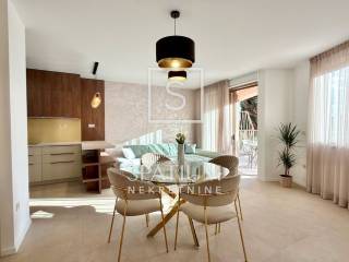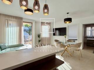 OPATIJA, we offer a fully furnished apartment in the very center of Opatija with a garage parking space for long-term rent. The apartment is located on the high ground floor and consists of a living room with kitchen and dining room, bathroom, two bedrooms and a covered terrace with a garden. Walking distance from the sea and the center and a secured garage parking space are the main advantages of this apartment for long-term rent.