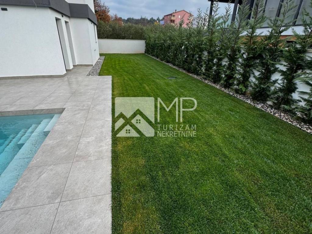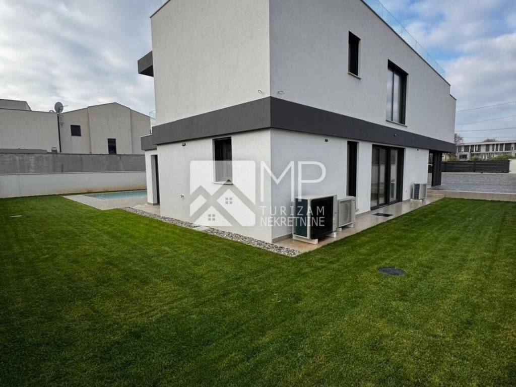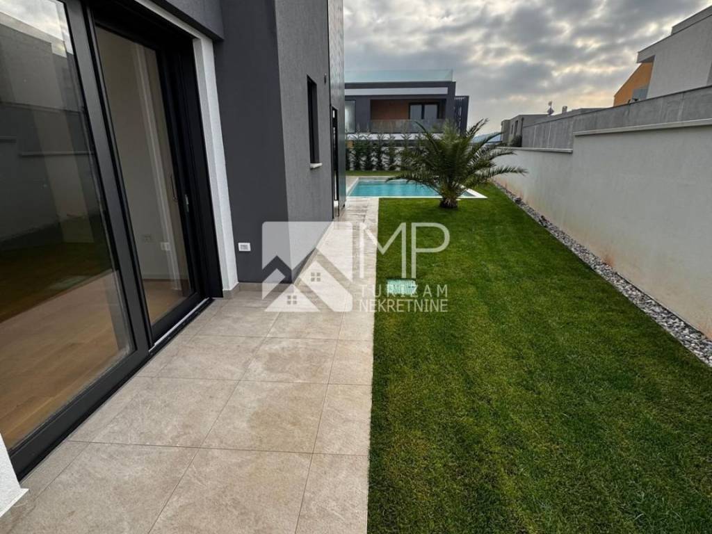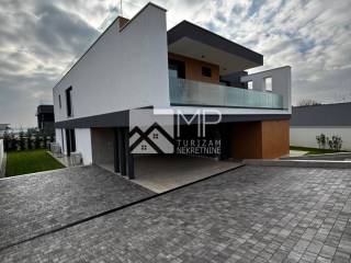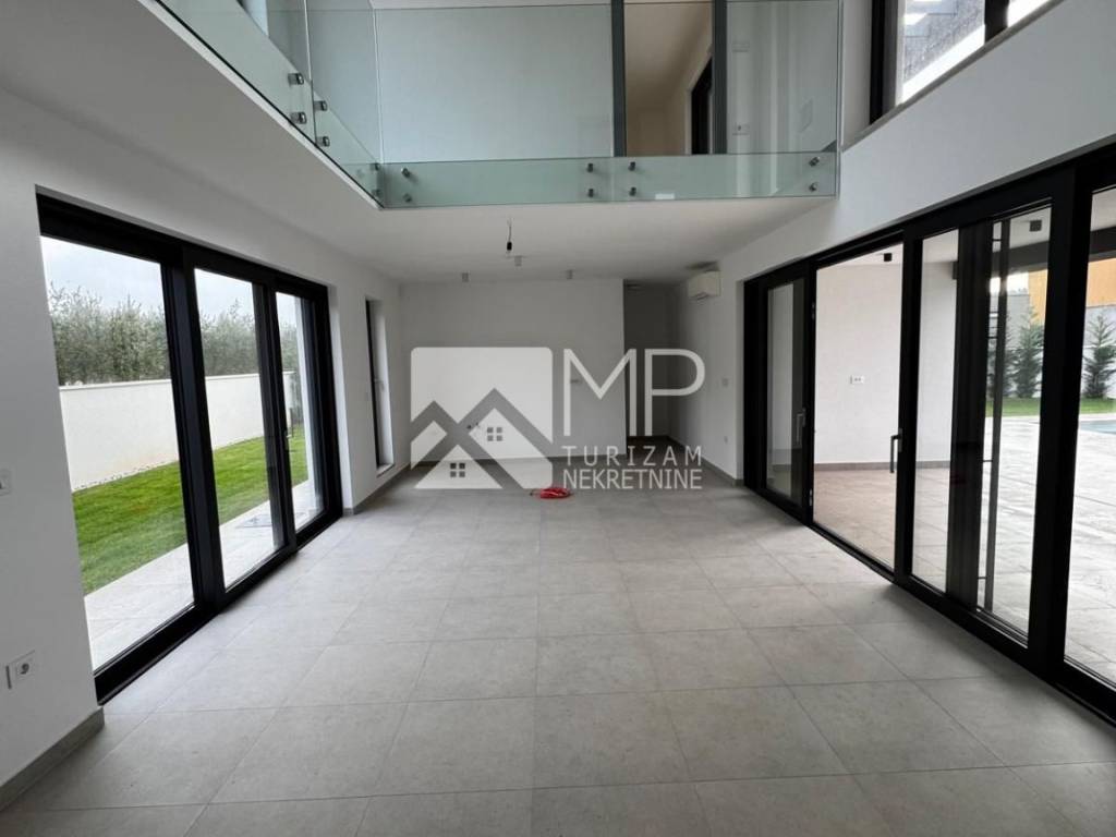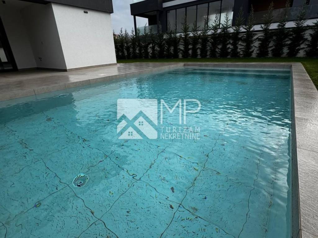 In an exceptional location in Pomer, just 75 meters from the sea, a modern and architecturally impressive detached villa with a total area of 332 m2 is for sale, situated on a spacious plot of 723 m2. The villa is spread over three floors and offers a high level of privacy, comfort and luxury with an open view of the sea.