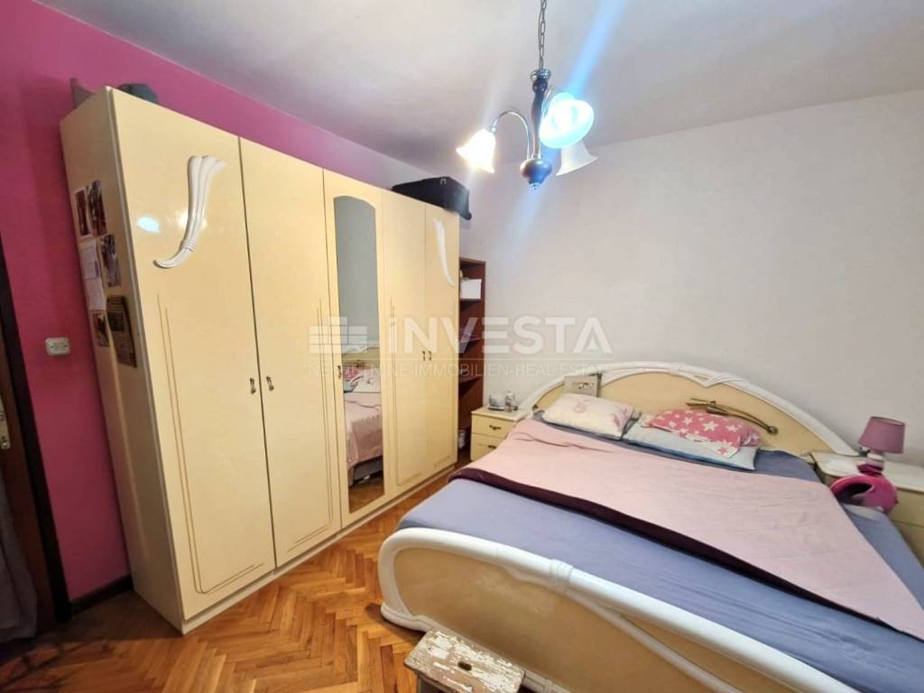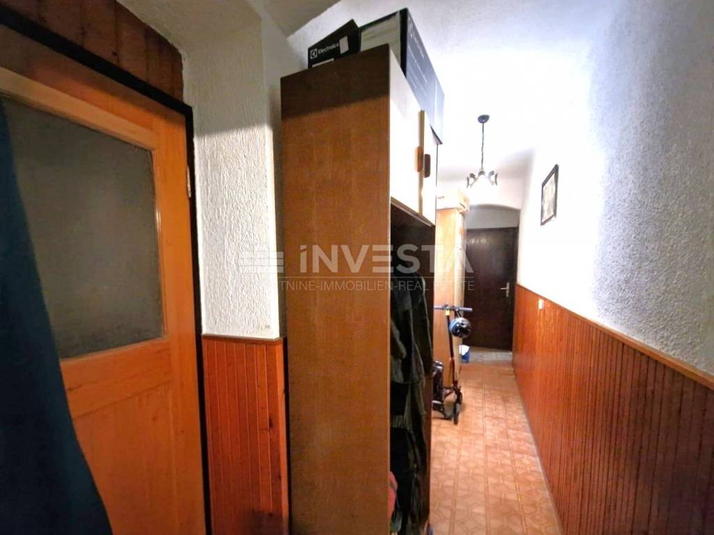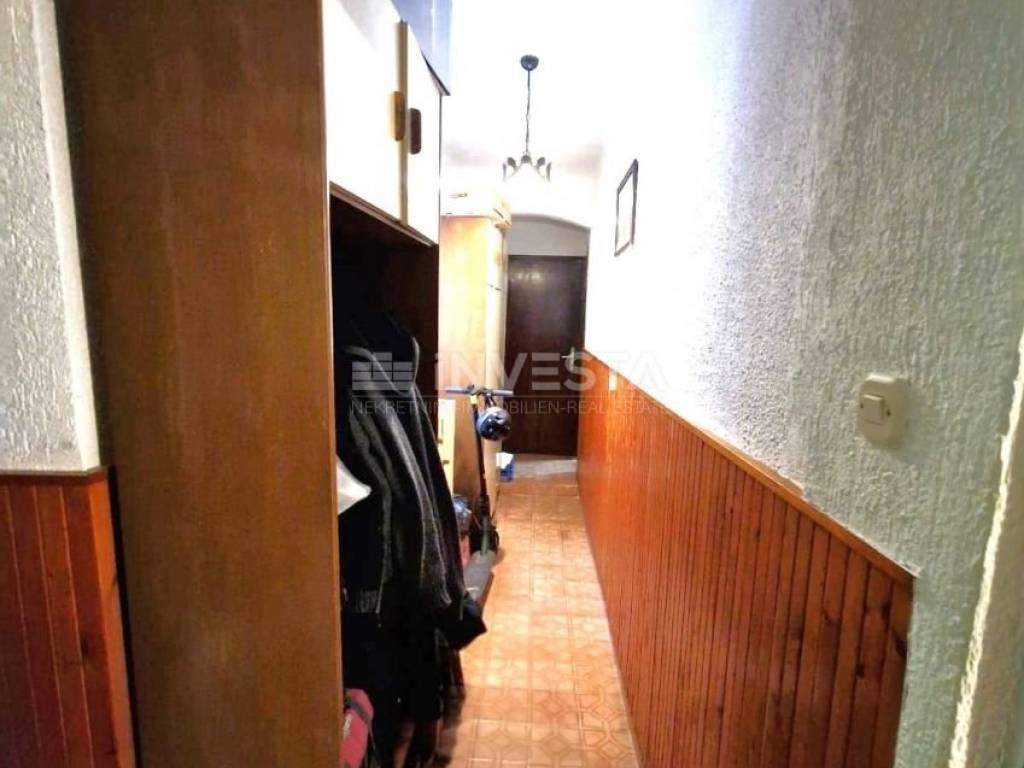 It is located in a quiet area in an old Austro-Hungarian building. Situated on the ground floor, it consists of an entrance hall, corridor, 2 bedrooms, a living room, kitchen with dining area, and a storage room. The apartment is accessed through a shared courtyard that all residents have the right to use.