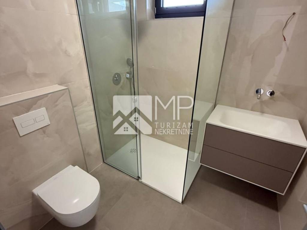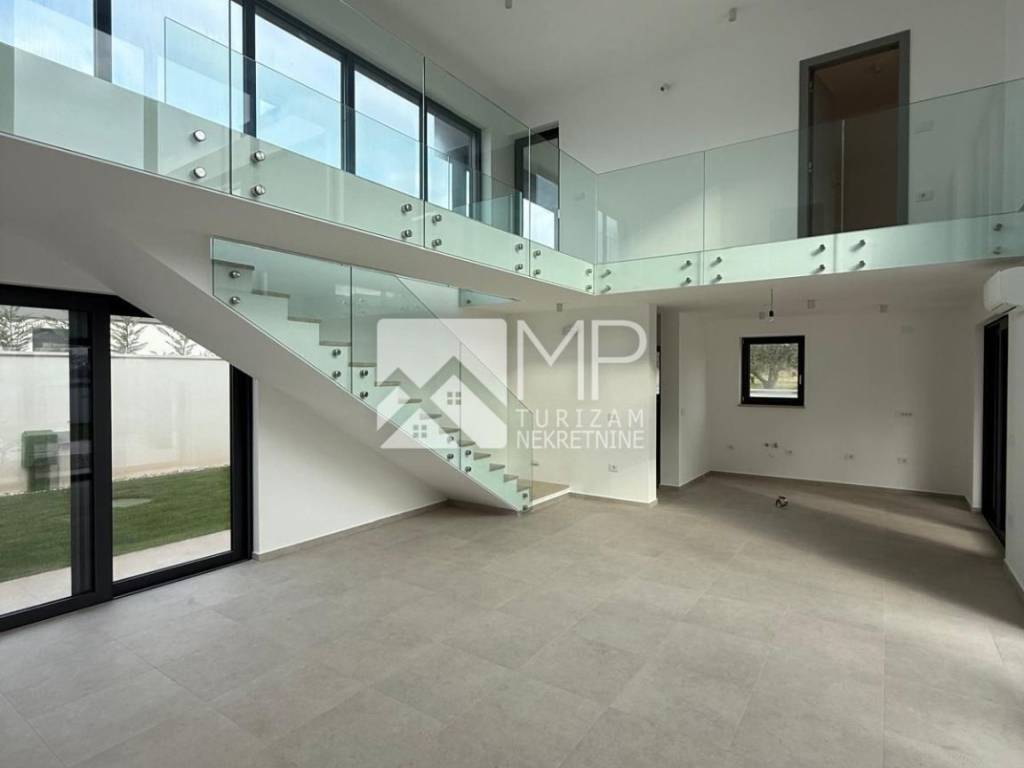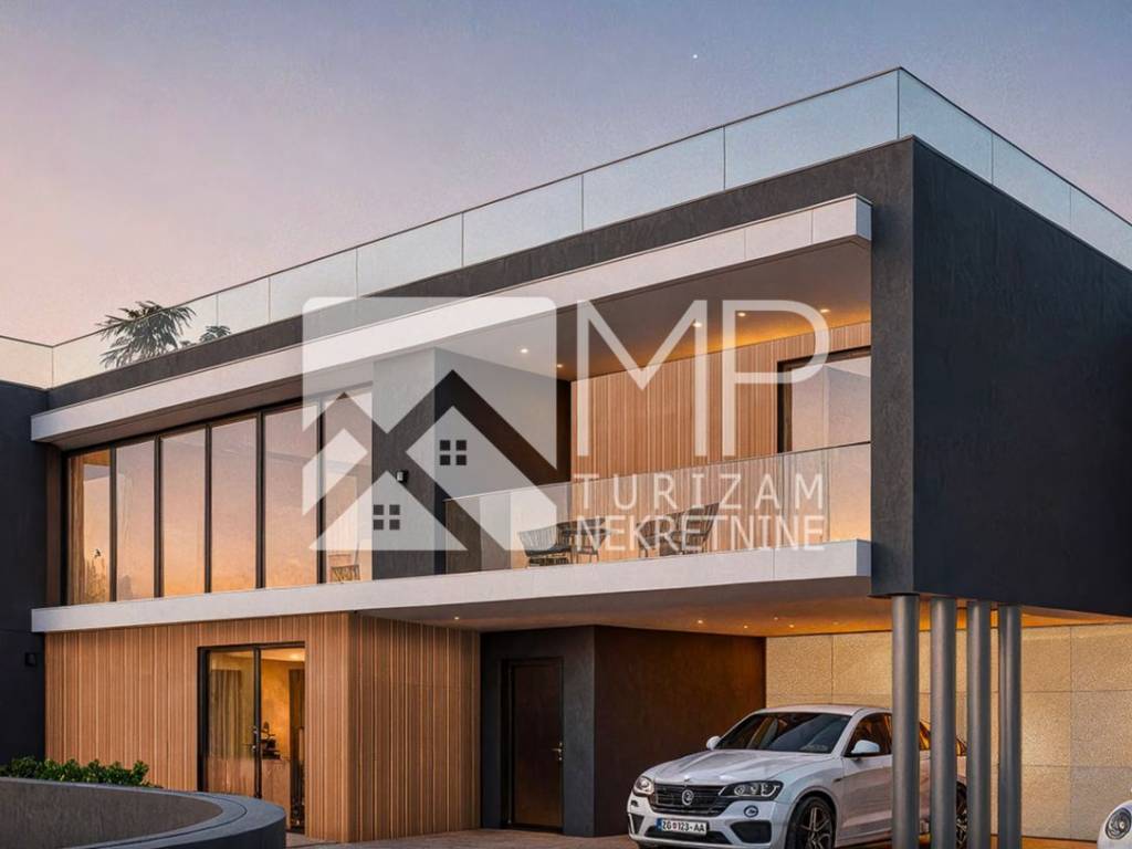 The heart of the villa is an impressive living room with a ceiling height of 6 meters, further emphasized by an internal gallery that gives the space exceptional airiness and luxurious character. Italian tiles and doors, Grohe bathroom fittings and parquet in the bedrooms ensure a top quality of life. The villa is equipped with underfloor heating and air conditioning in all rooms, while premium aluminum windows provide excellent insulation and a beautiful view.