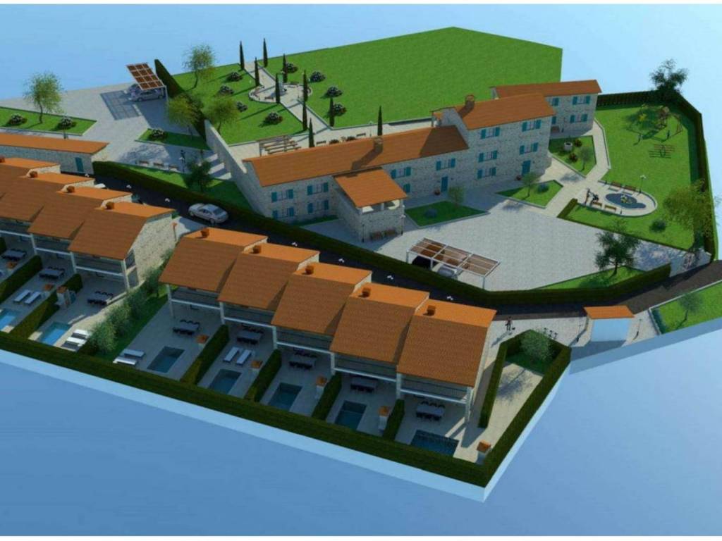 Just a few kilometers from Poreč, between Poreč and Višnjan, an old ruin of 417 m2 is for sale, with land for construction purposes of 4,862 m2 and agricultural land of approx. 10 ha, of which 95,000 m2 is owned, while 38,000 m2 is in possession. (purchase possible)