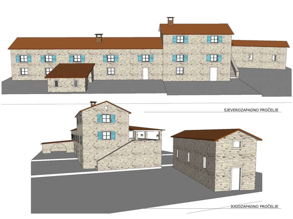 The owner made a visualization of the former appearance of the large stone property, which may or may not be reconstructed in the same way. Additionally, the possibility of building additional buildings on the construction land that can be used for tourism (residential resort) or buildings for resale can also be built.