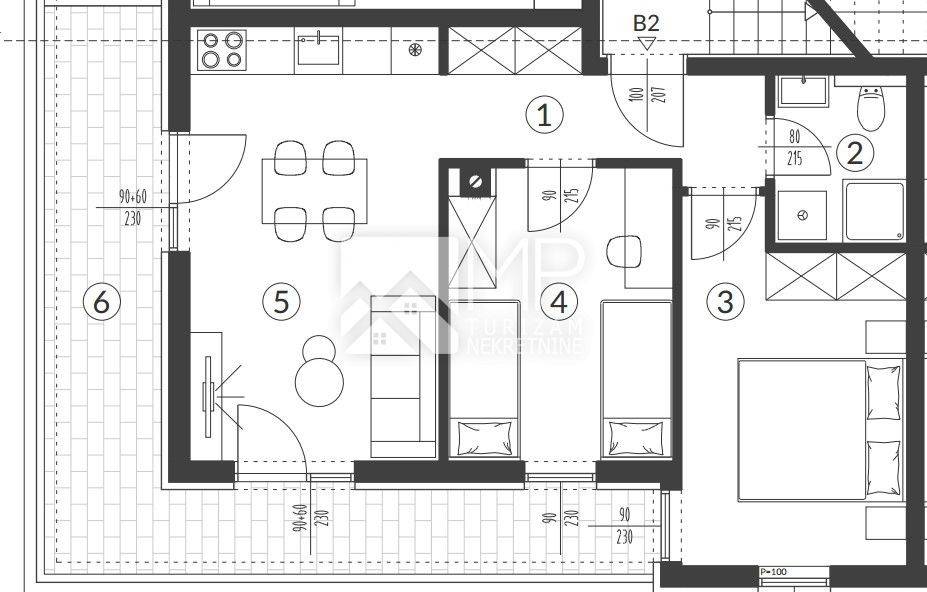The apartment stands out with its functional and well-designed layout, providing comfort and privacy in two bedrooms, which is rare in a new building of this size. Large glass elements allow for plenty of natural light, and the living room has direct access to a spacious covered terrace, ideal for relaxing and socializing. The price includes a parking space, and buyers are exempt from paying real estate tax.