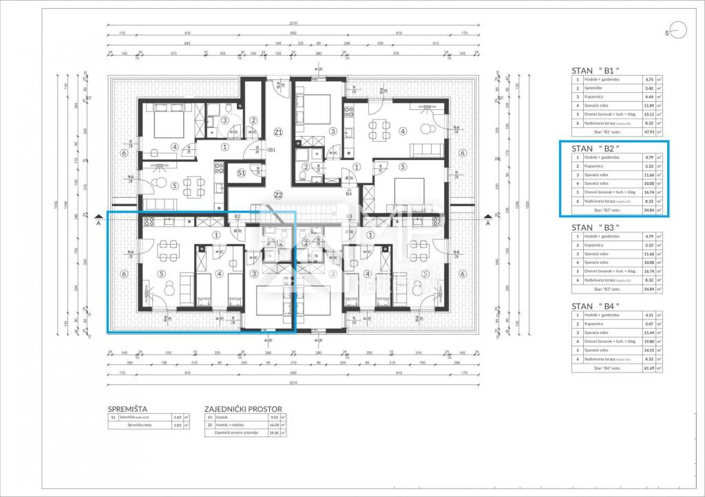 For sale is a functionally arranged two-bedroom apartment in a new building (designation: B2), with a total net area of 54.84 m², with an associated parking space PM1 (3.12 m²) and a private garden of 44 m², making a total calculation area of 62 m².