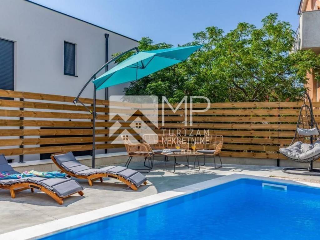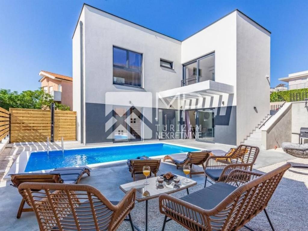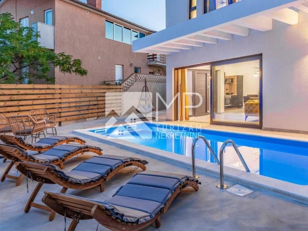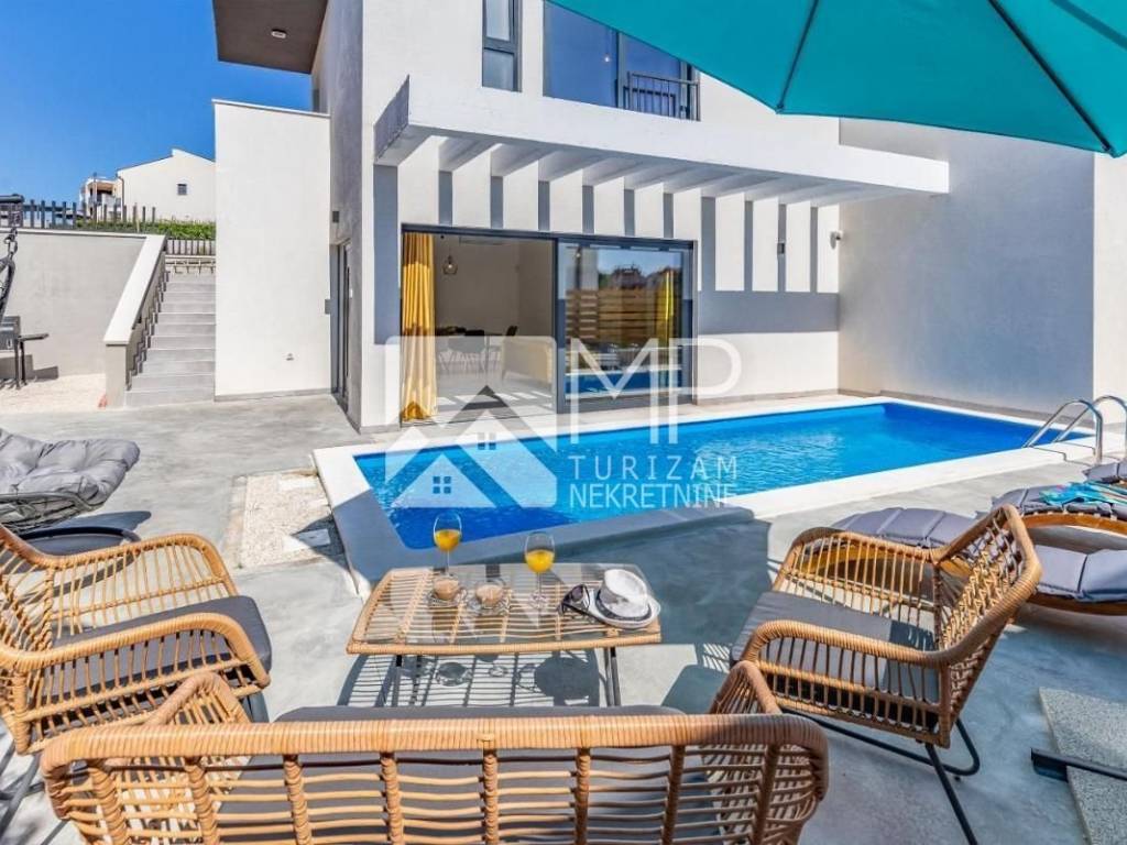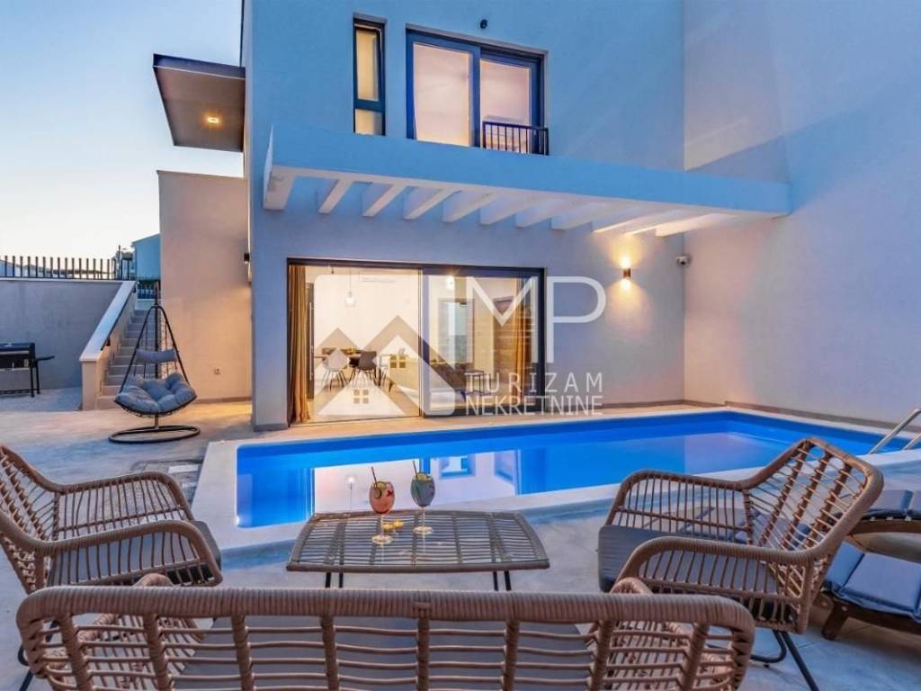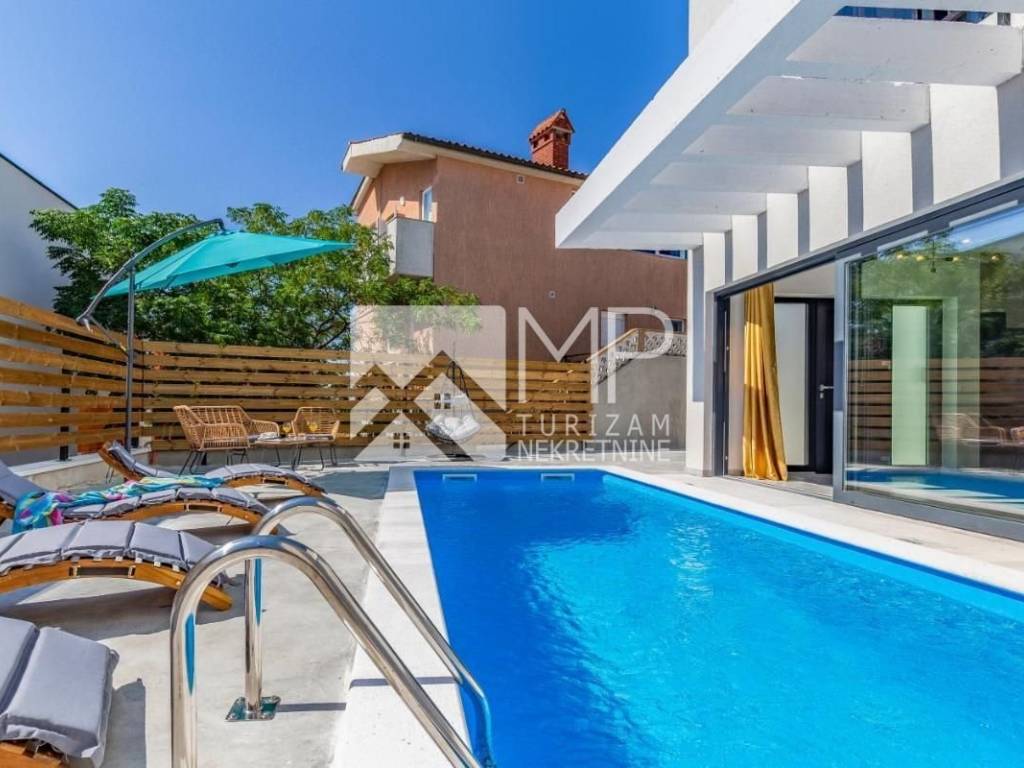 For sale is a beautiful newly renovated villa located in the new urban part of Medulin, on a plot of 625 m², consisting of two separate two-story residential units, with their own swimming pool, part of the garden and a barbecue area.