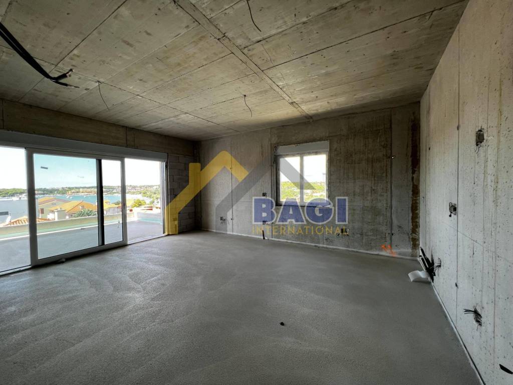 The mentioned penthouse is located on the second floor of the building and consists of two bedrooms, two bathrooms and a living room with a kitchen and a dining room with a living area of 78.24m2. The apartment also has a terrace of 36 m2, which is a great advantage, considering that the apartment has a panoramic view of the sea. The property also has a parking space located in the building's garden and an additional garage space.