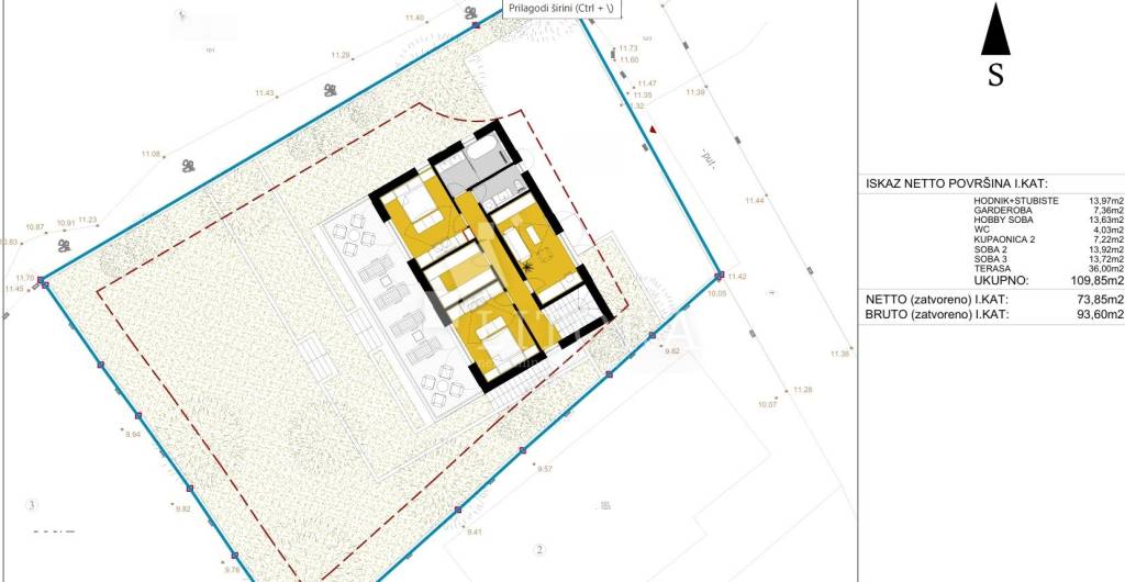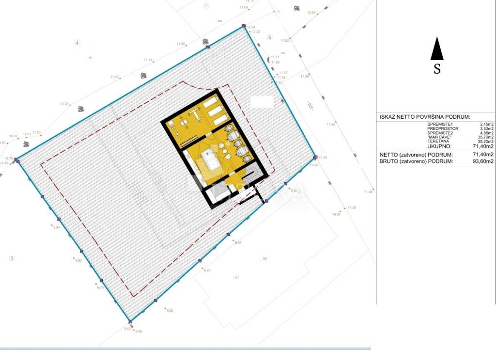 Tribunj, građevinsko zemljište površine 616m2; Prema urbanističkom planu općine Tribunj, zemljište je smješteno u zoni M1 – 6b. Parcela je pravilnog pravokutnog oblika dimenzije 17,50m širine uz prilazni put, i 29m dužine. U tijeku je ishođenje građevinske dozvole za obiteljsku kuću površine 227,75 m2 bruto površine. Zemljište je većim dijelom ograđeno betonskim zidom, pod manjim je nagibom i ima ucrtan javni prilazni put. Kompletna infrastruktura se nalazi do terena. Udaljenost do mora / plaže je 450 m, a do centra 500 m.