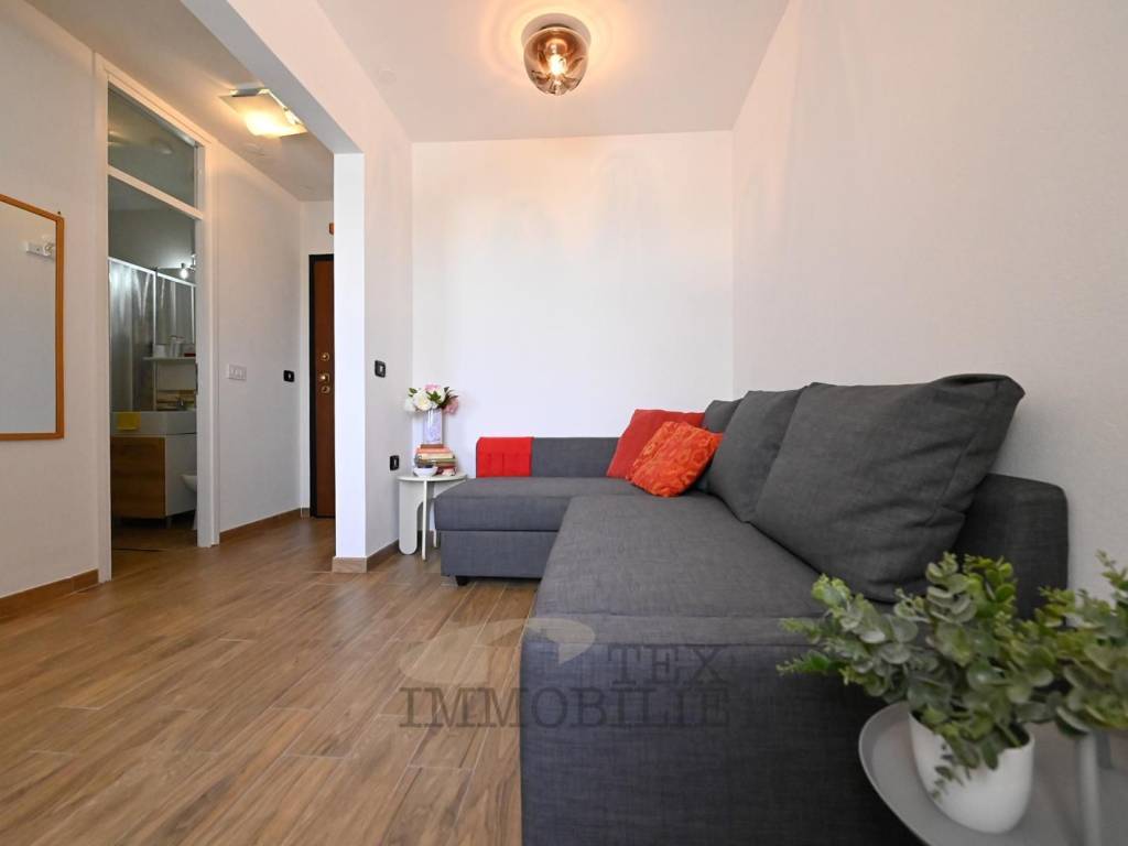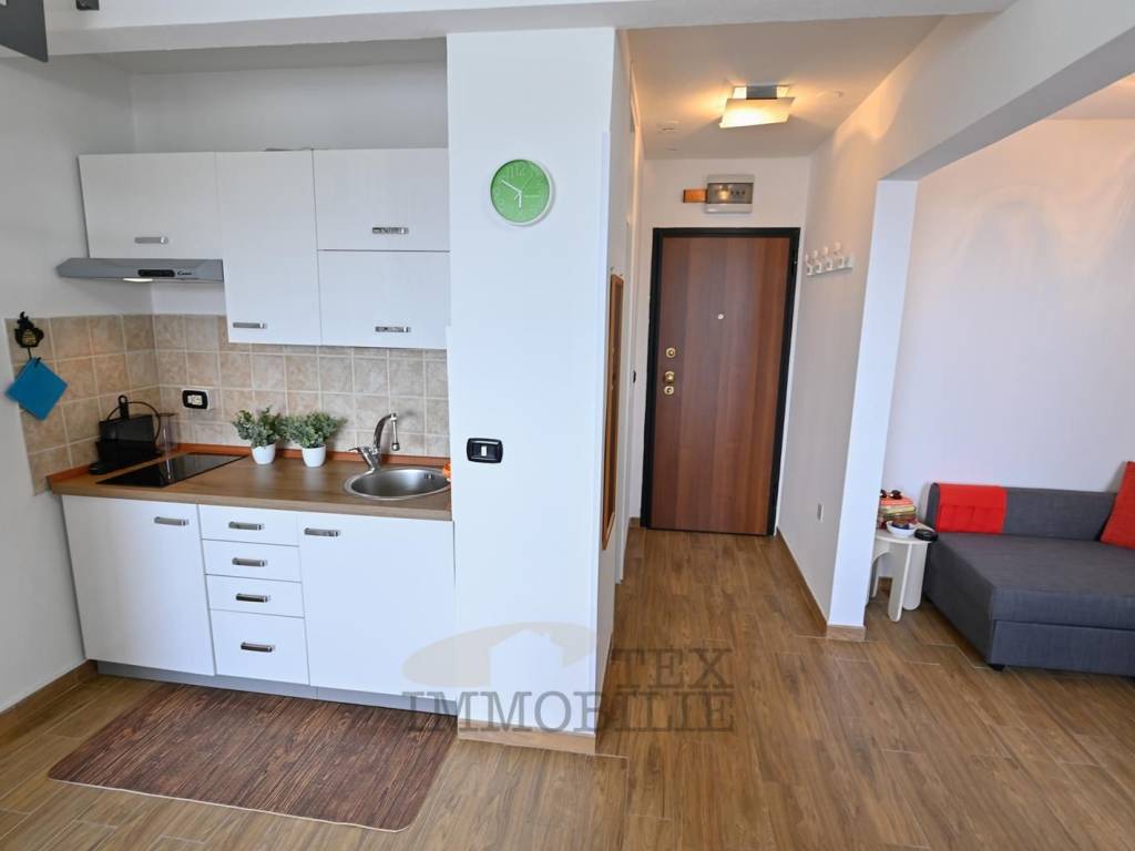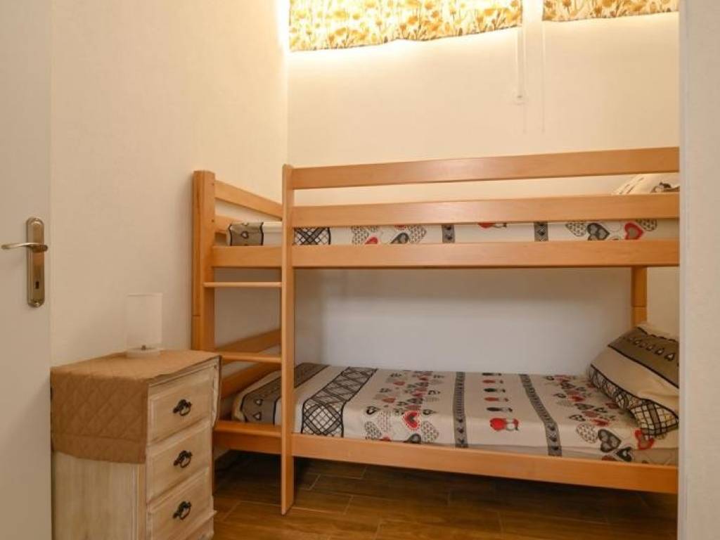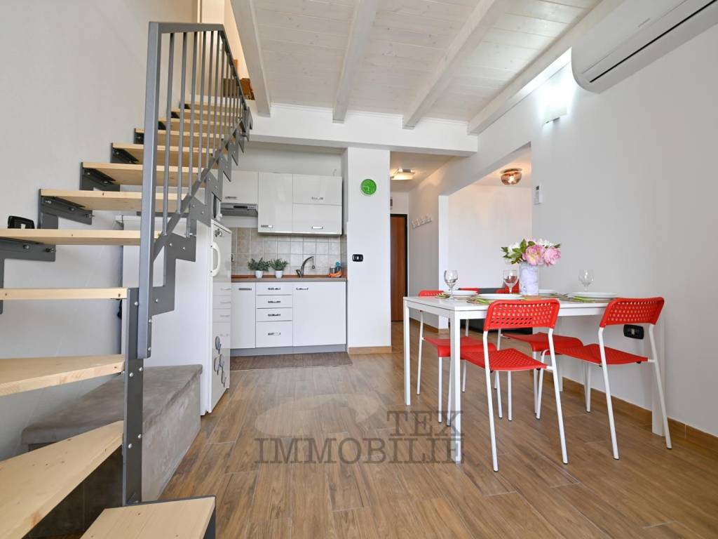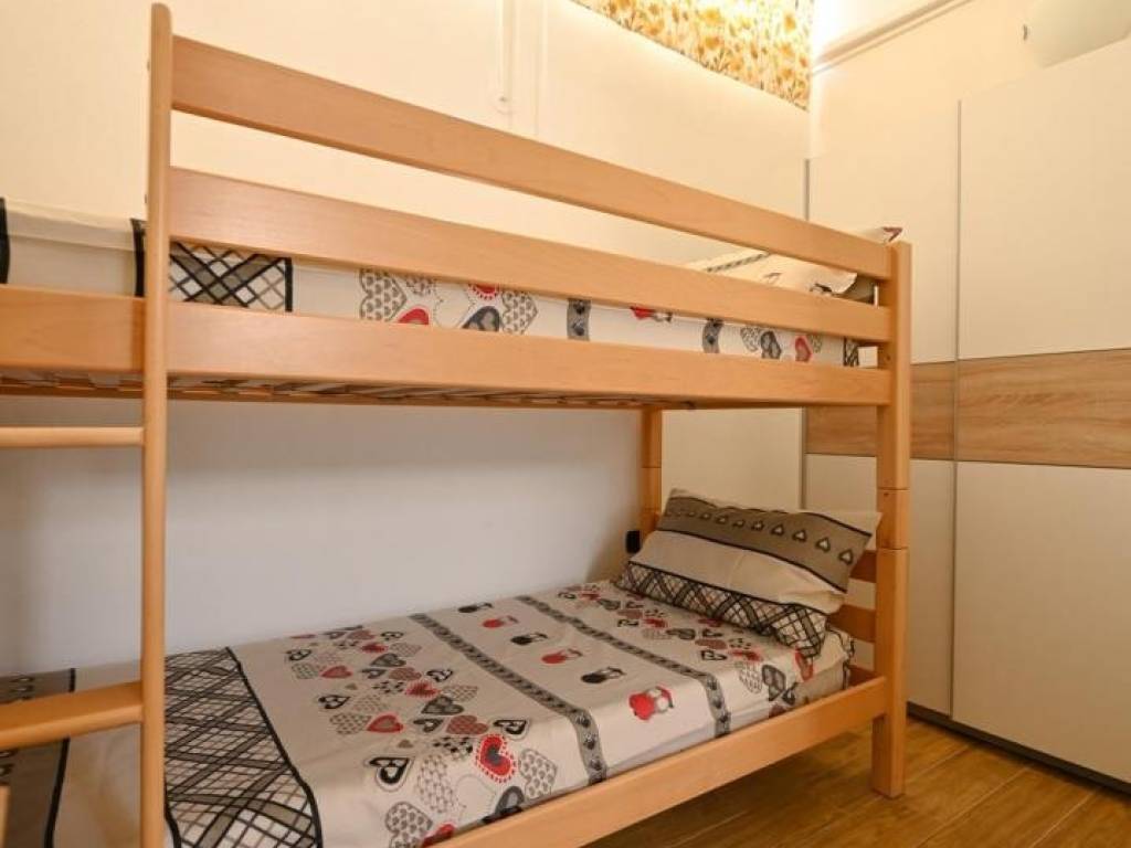 The apartment spans two levels. The lower level features an entrance hallway, a modern kitchen with a dining area, a living room, a bathroom, and an enclosed balcony that opens the space toward the sea and brings in abundant natural light. The upper level is reserved for two comfortable bedrooms that offer peace and privacy.