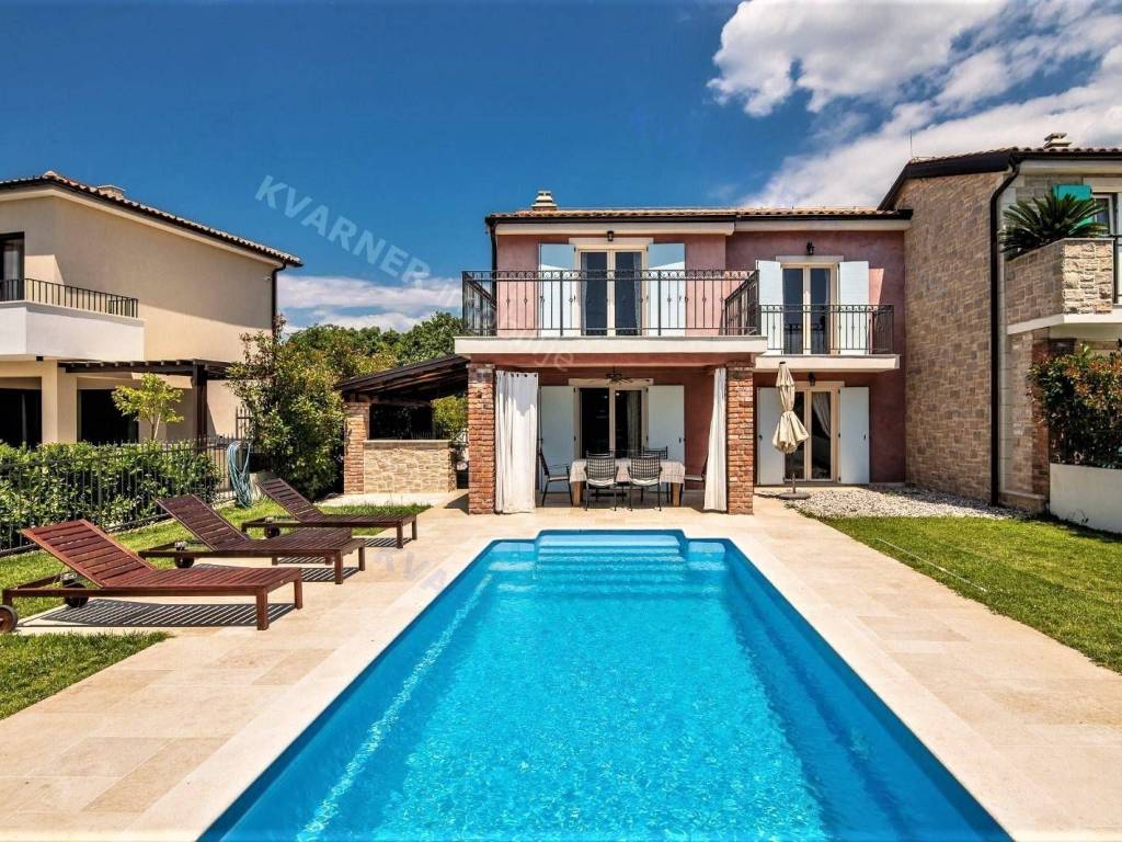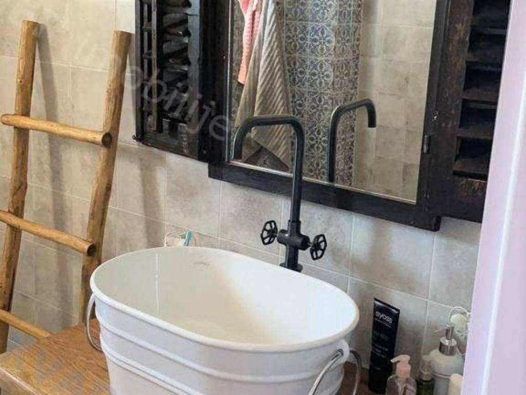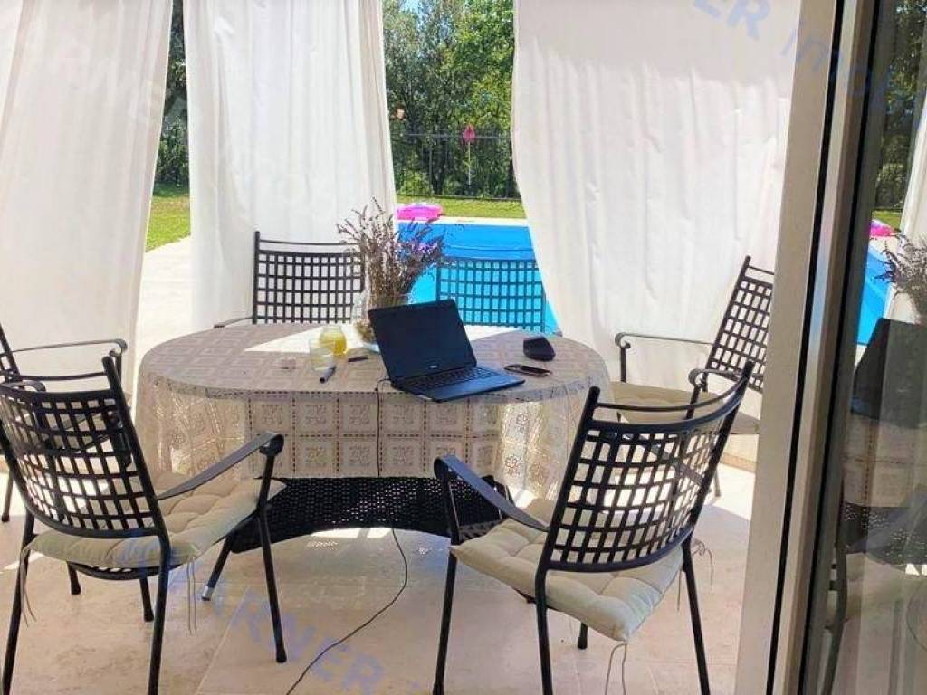 Decorated with exquisite taste and style, the villa is split between a ground floor and an upper floor, encompassing a living space of around 135 m².. On the ground floor, you will find a bathroom, a bedroom, and a spacious open-plan kitchen with a dining area and a living room that lead to a covered terrace and a garden with a pool, offering views of the sea and greenery. Interior stairs lead to the upper floor, where there is a bathroom and two bedrooms with access to a terrace and balcony, which also provide sea views. The property also includes a covered summer kitchen in the garden, perfect for socializing and preparing meals during the summer months. The house is being sold fully furnished and equipped in a style that will appeal to many. The garden is landscaped with plants and a lawn, and features an irrigation system.
