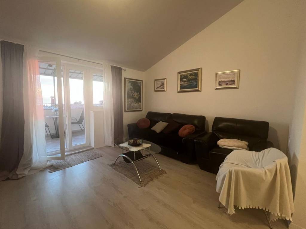An apartment for sale near the beaches and the center of Poreč. The apartment is located on the top floor of a residential building, it is 300 m from the beach and 500 m from the center, and has a panoramic view of the sea and the city of Poreč.