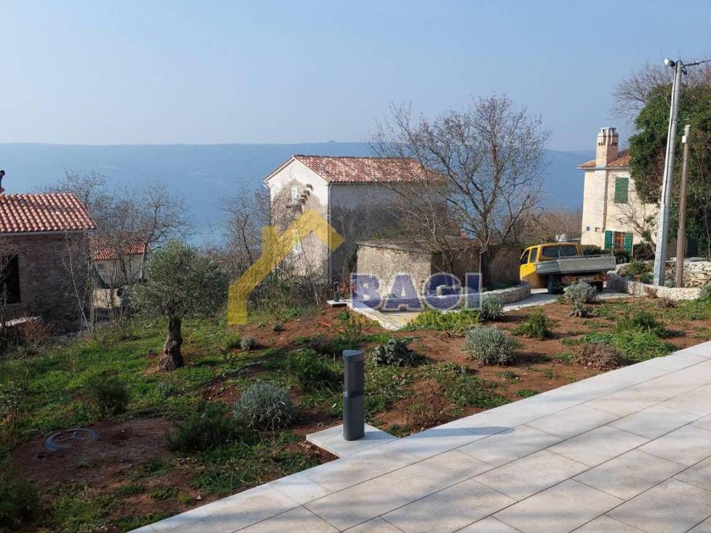 We are selling a beautiful smaller house with a view of the sea and only 450m away from the sea by air! The house is a 82m2 storey building, which on the ground floor consists of a living room with a kitchen and dining room, and a storage room. On the first floor of the house there is a hallway, a bathroom and two bedrooms that open onto a terrace where you can enjoy a dreamlike view. It is located on a plot of 350 m2 with a pool of 32 m2. The house has been completely renovated and is in an advanced stage of reconstruction. The sale price of EUR 330,000 is valid for the current construction phase, the price of the completed house is EUR 450,000. The possibility of buying the neighboring house which is in the same stage of reconstruction as the content and area. The price for two houses is EUR 600,000. Distances Trget 1.5km, Labin 12km, Pula Airport 35km,