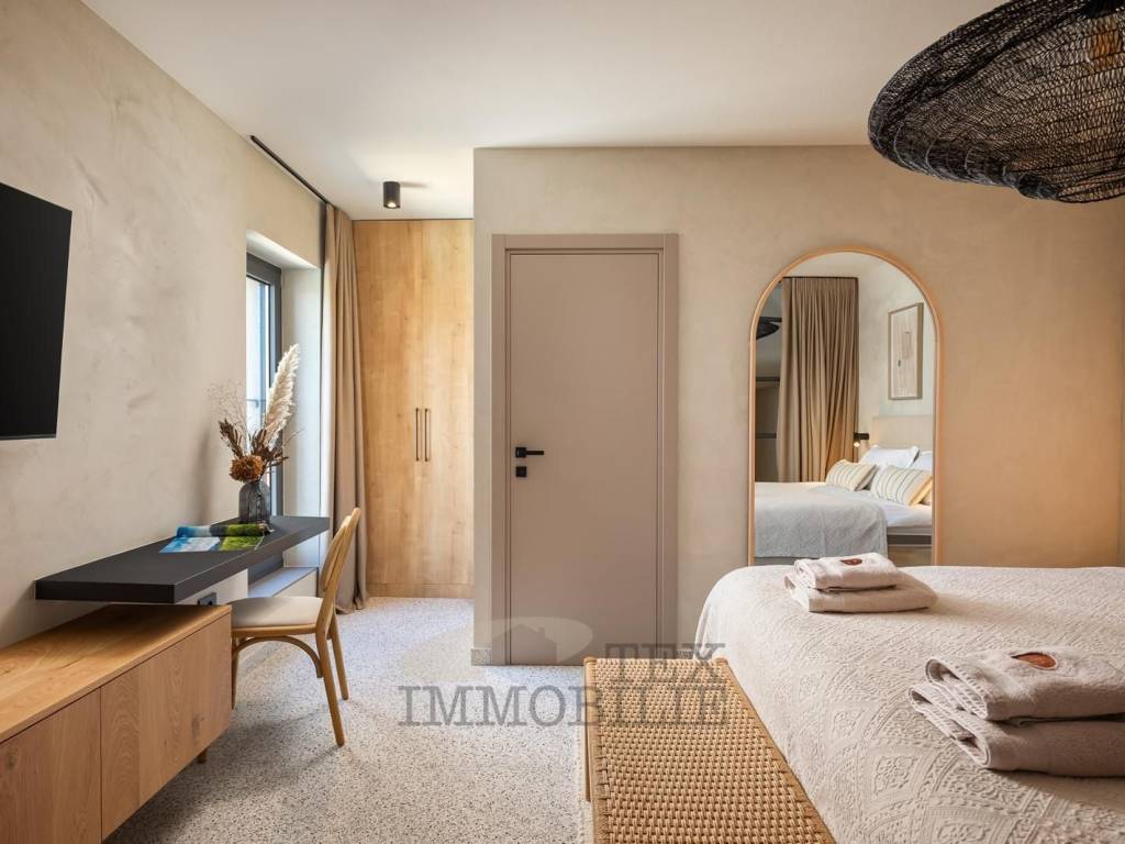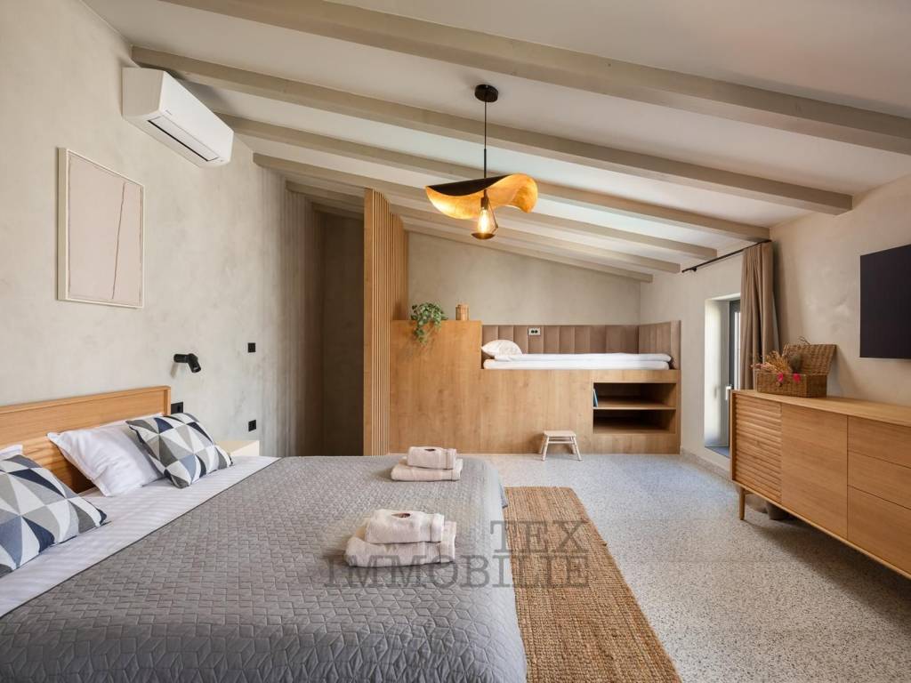 The second bedroom, located on the top floor, is equally comfortable and includes its own bathroom, wardrobe, and an additional bed, making it ideal for family members or guests.