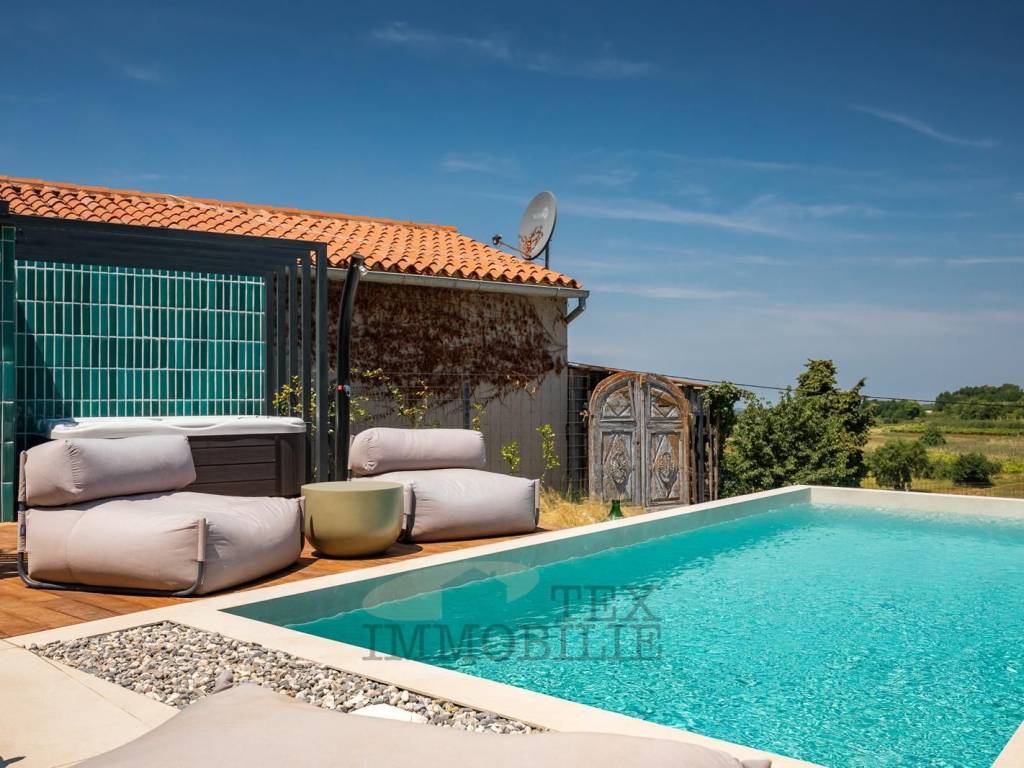 The house is located in an exceptionally quiet and picturesque setting, surrounded by vineyards and well-known Istrian wineries. The location offers a perfect escape from city life, with opportunities for long walks and enjoying nature. The sea and well-maintained beaches are 17 km away, while the center of Vižinada, offering basic amenities and restaurants, is just 2 km away.