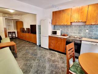 The house is located in an attractive and quiet location, first row to the sea, with a view. It consists of a ground floor, first floor, and attic. The ground floor includes an entrance hall, kitchen with dining area and living room, bathroom with toilet, storage room, and bedroom. The first floor has two bedrooms, a kitchen, bathroom, toilet, and a large covered terrace. The attic is a space suitable for conversion into a studio, workspace, or additional bedroom. This property is noteworthy, ideal for family vacations, tourism business, or family living.