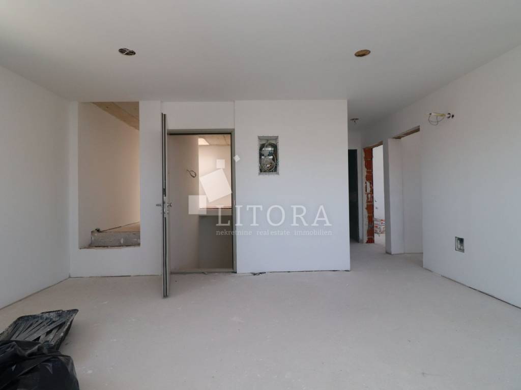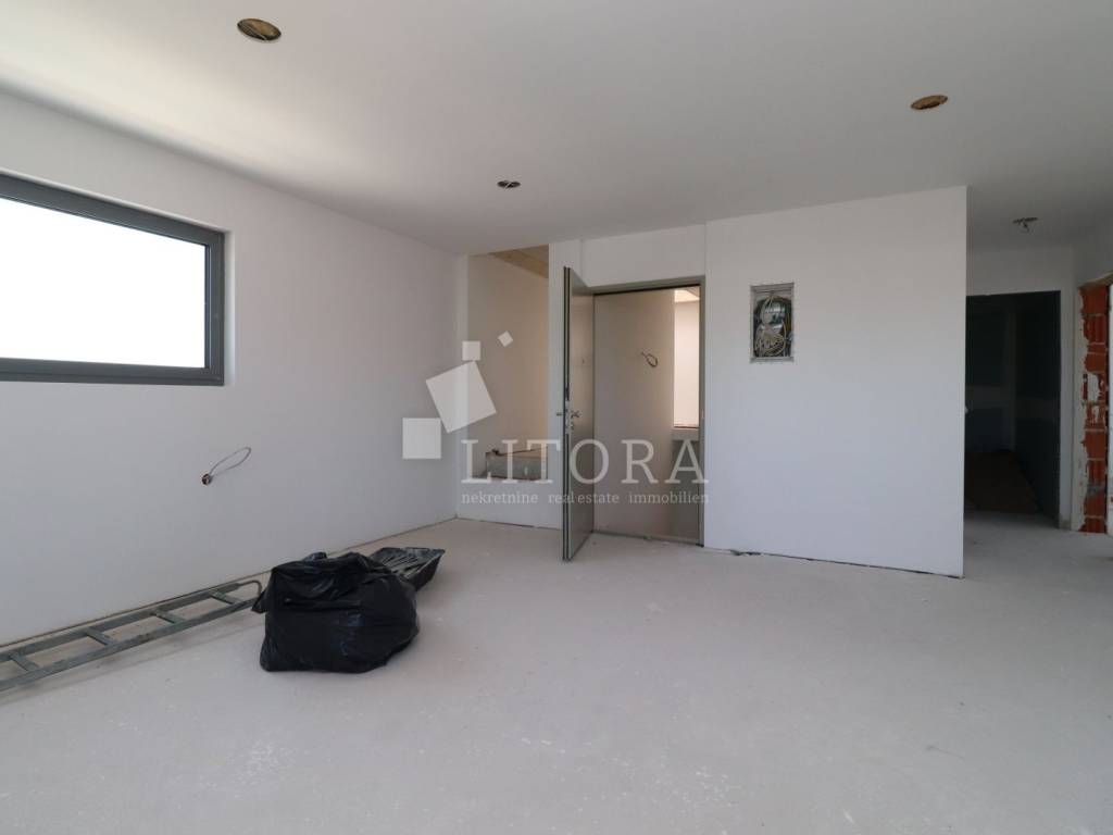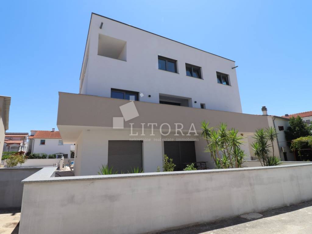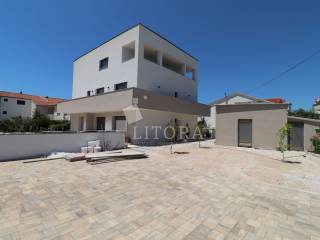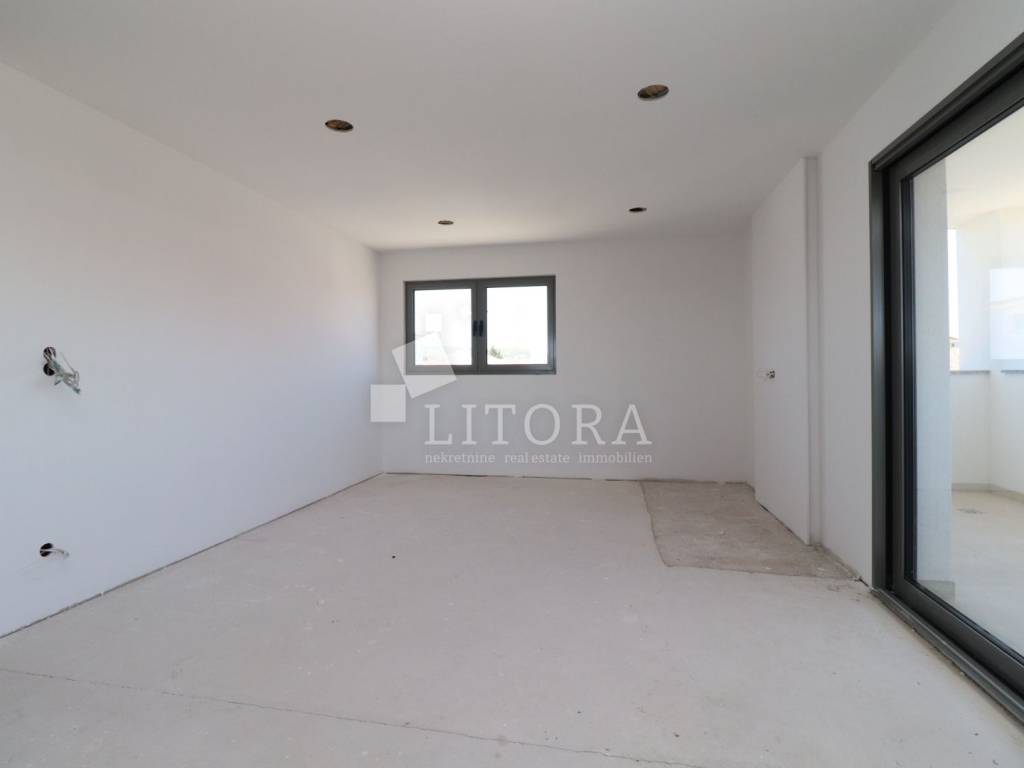 Vodice – Spacious Two-Bedroom Apartment with Large Terrace and High-Quality Equipment. The apartment is located in a quiet area of Vodice, within a small, newly built residential building. It is situated on the second floor and occupies the entire level, with a total usable area of 93,21 m². It consists of: entrance hall, two bedrooms, toilet, bathroom, spacious living room with kitchen and dining area, a and a terrace od 17m2. The apartment is in the final phase of completion, and the building will be ready for occupancy by autumn. Equipment includes: security entrance door, air conditioning units in each room, insect screens, underfloor heating, aluminum windows with triple glazing and UV protection. The apartment comes with one outdoor parking space. Distances to the beach: 690 m. To the town center: 800 m.