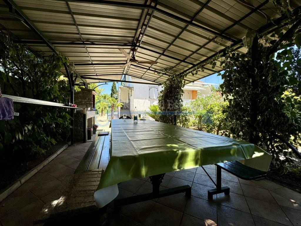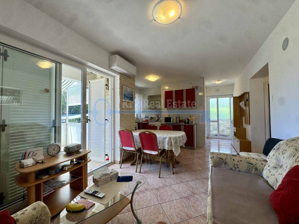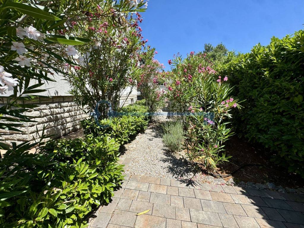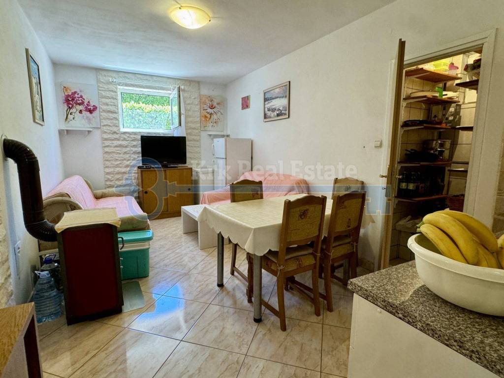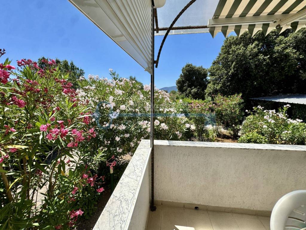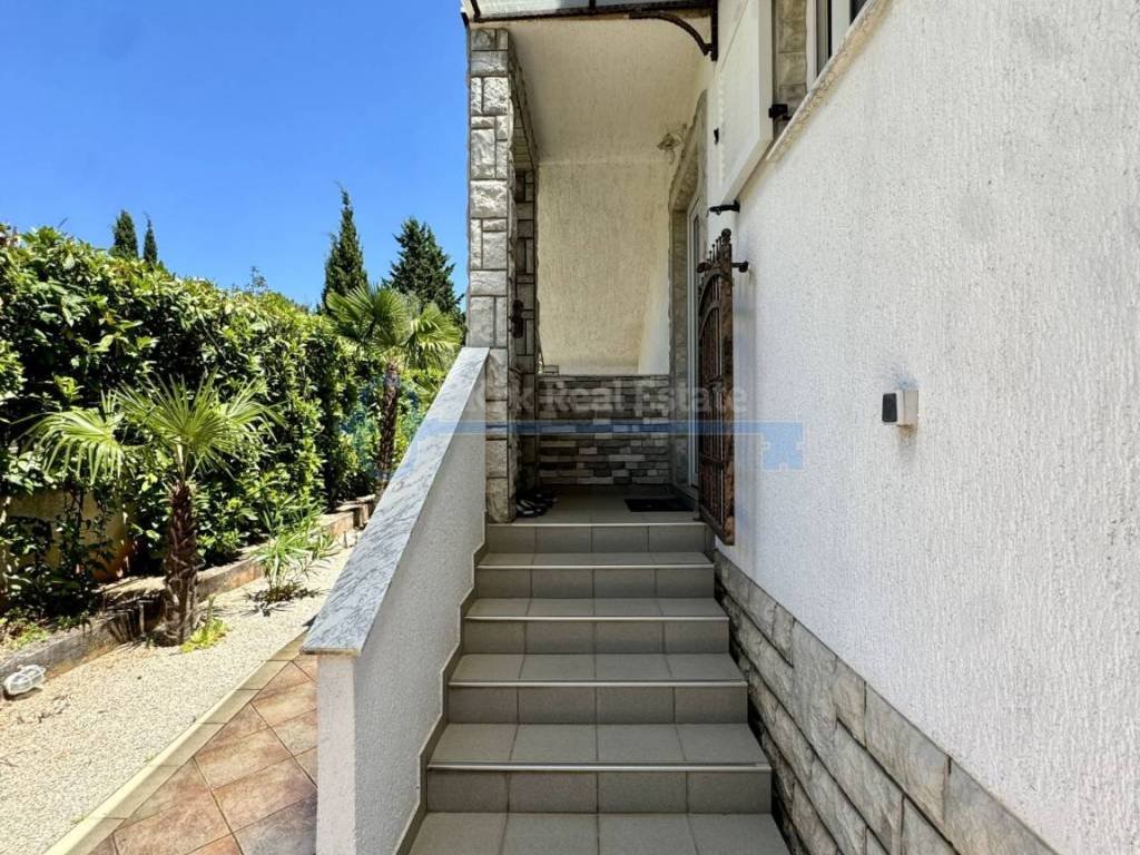 For sale is a nice one-story house with a living area of 100 m2, located in a quiet place near the sea and beaches. It consists of two apartments, one in the basement and the other on the ground floor. The apartment in the basement contains a living room, kitchen, dining room, two bedrooms and a bathroom, as well as a storage room. The apartment on the ground floor contains two bedrooms, a living room and a kitchen with a dining room, a bathroom and a balcony. It has a garden area of 600 m2, where there is a swimming pool with space for relaxing and socializing, a barbecue and a covered parking space for cars. It is only 850m away from the sea and beautiful beaches.
