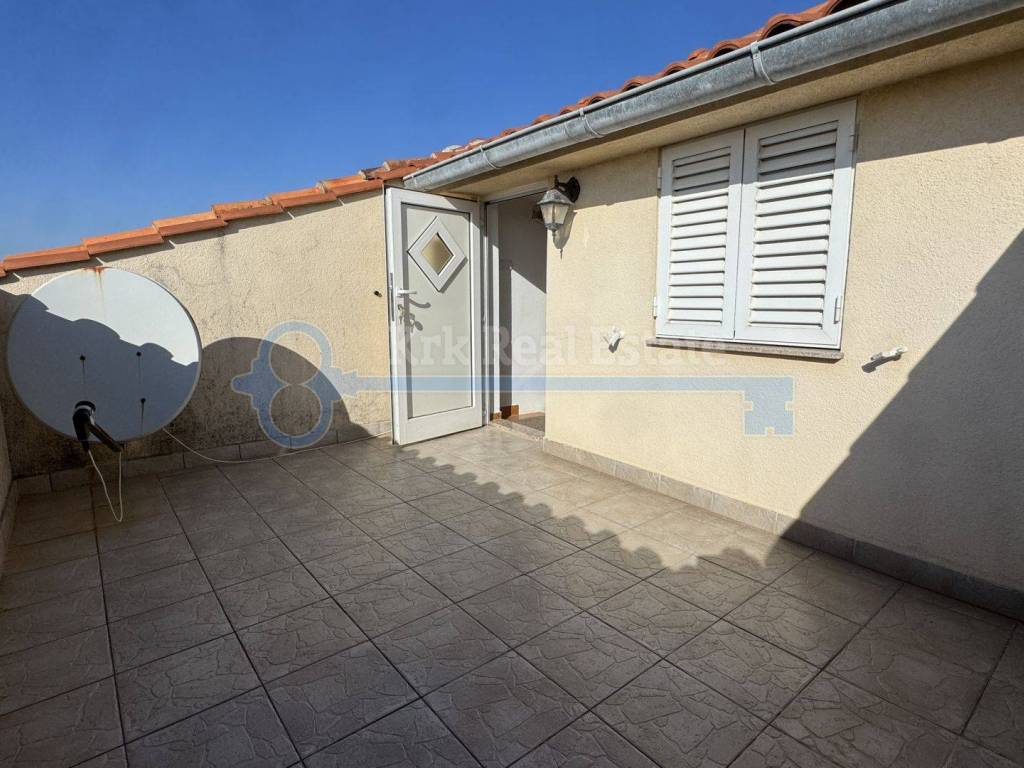 For sale is a 65m2 house with a sea view. It consists of a ground floor with a kitchen, dining room and bathroom. On the first floor there is a bedroom, on the second floor there is another bedroom and a terrace. It is located in a quiet area. Only 230 meters away from the sea.