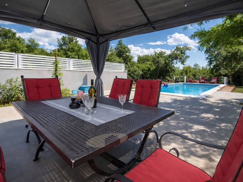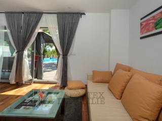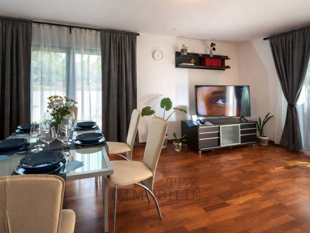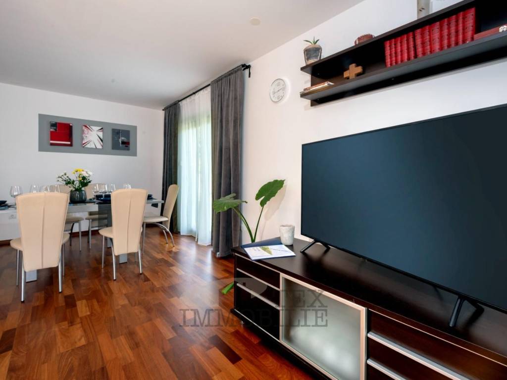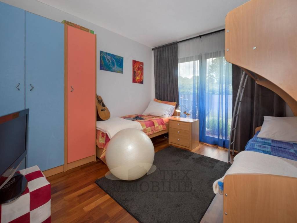 For sale is a beautiful ground floor apartment with a total living area of 98 m², situated on an exceptionally spacious plot of approximately 1,032 m², in a quiet and pleasant environment near Poreč, only 2.5 km from the sea and well-maintained beaches.