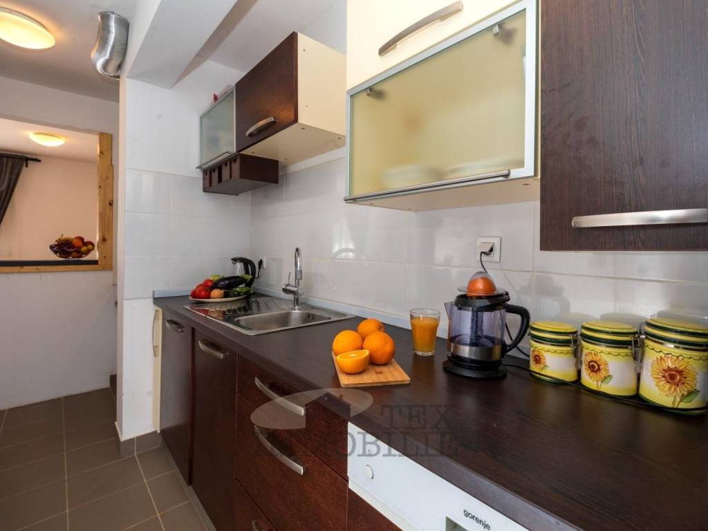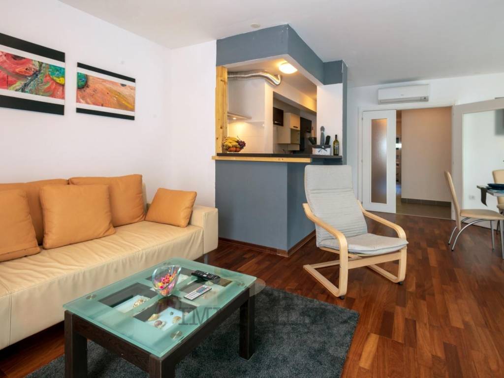 The apartment consists of a spacious and bright living room with dining area, a fully equipped kitchen, two comfortable bedrooms, and a bathroom. The property is sold fully furnished and ready for immediate occupancy. It is equipped with air conditioning in all rooms and features a chimney, allowing the installation of a fireplace.