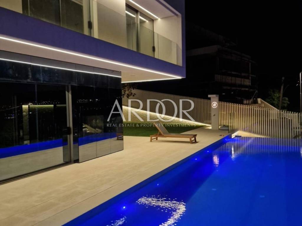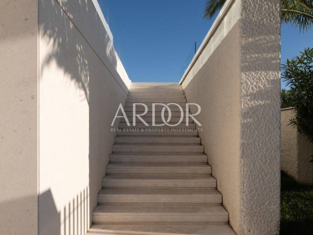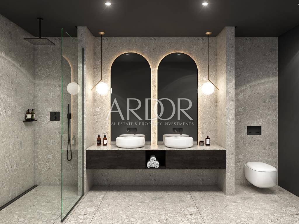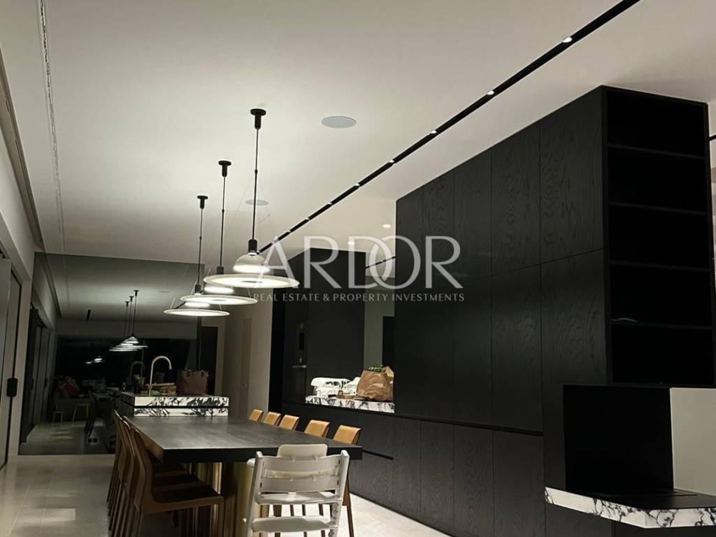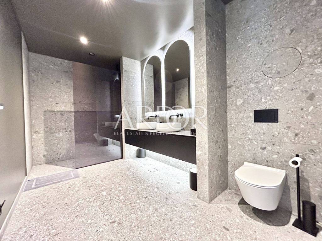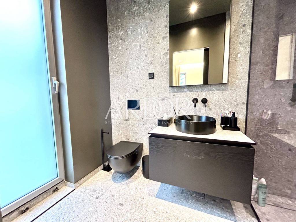 This modern villa offers a total of 380 m² of terraces, a 45 m² infinity pool, and exotic greenery within the private garden, making it unique on the Opatija Riviera. The interior is further enriched by atriums and outdoor sunken spaces in the basement, which are connected to the gym and sauna.
