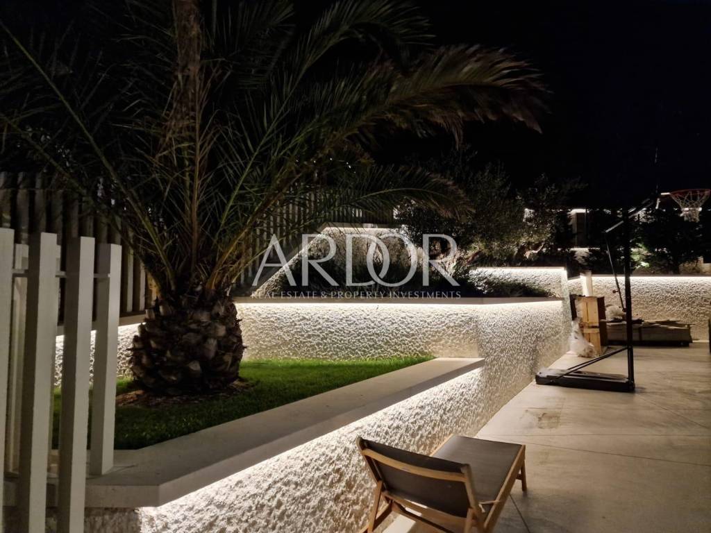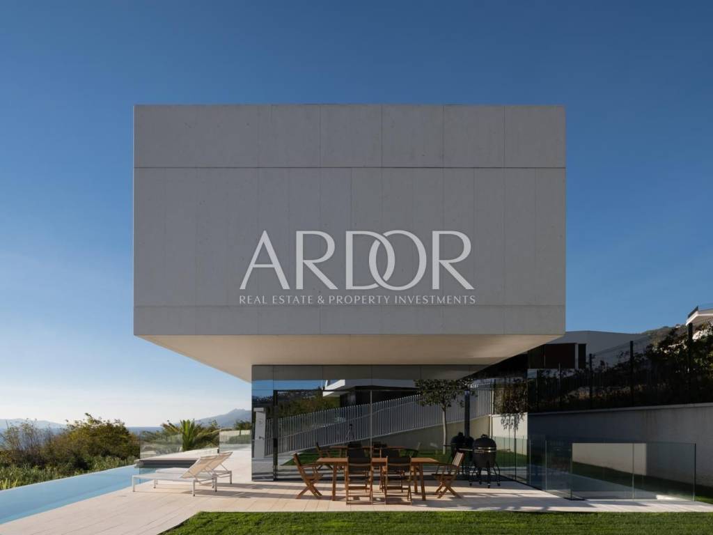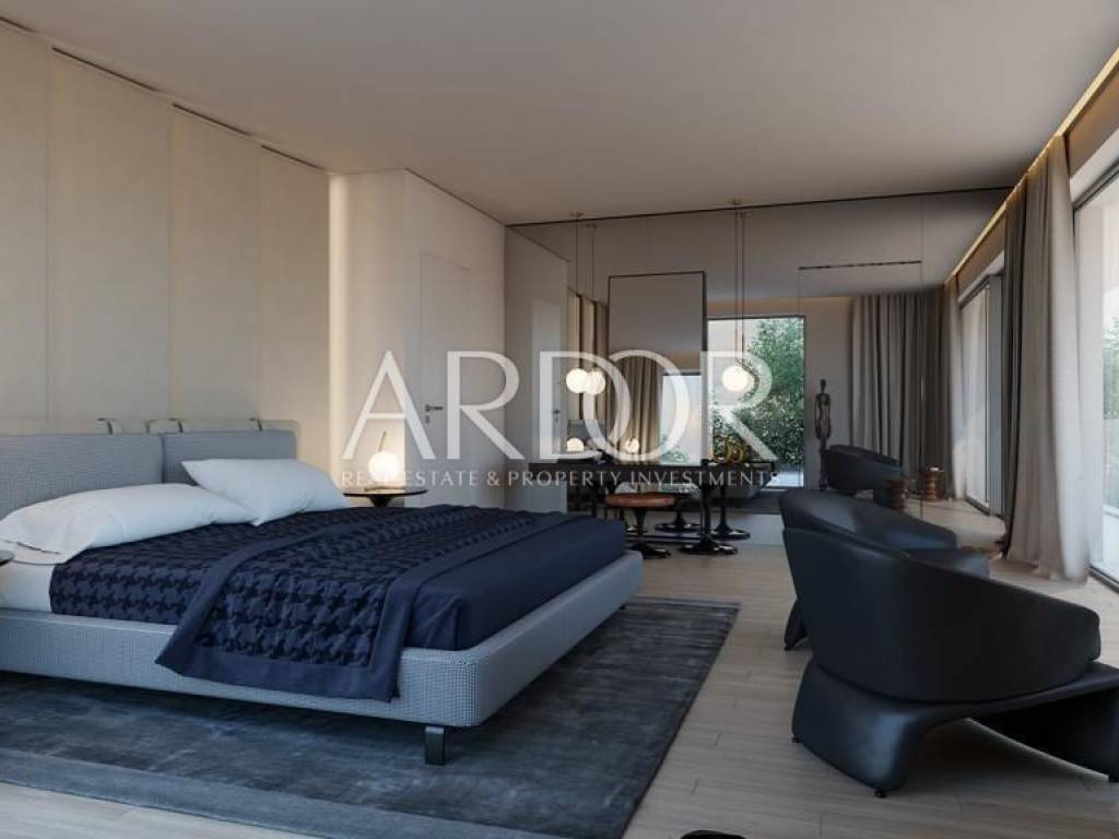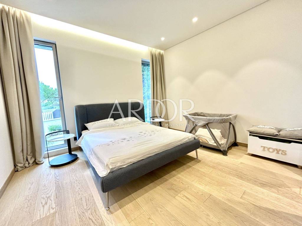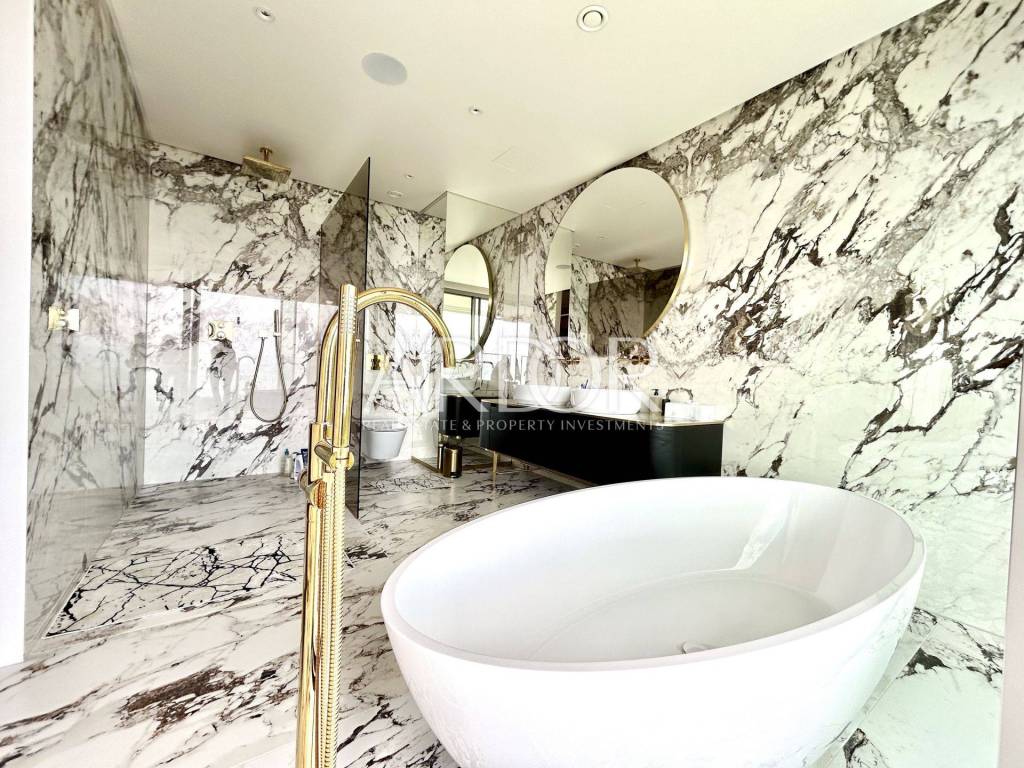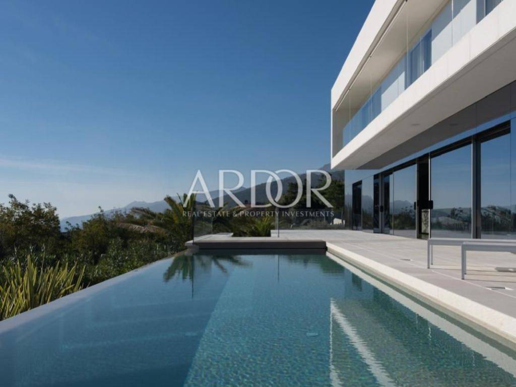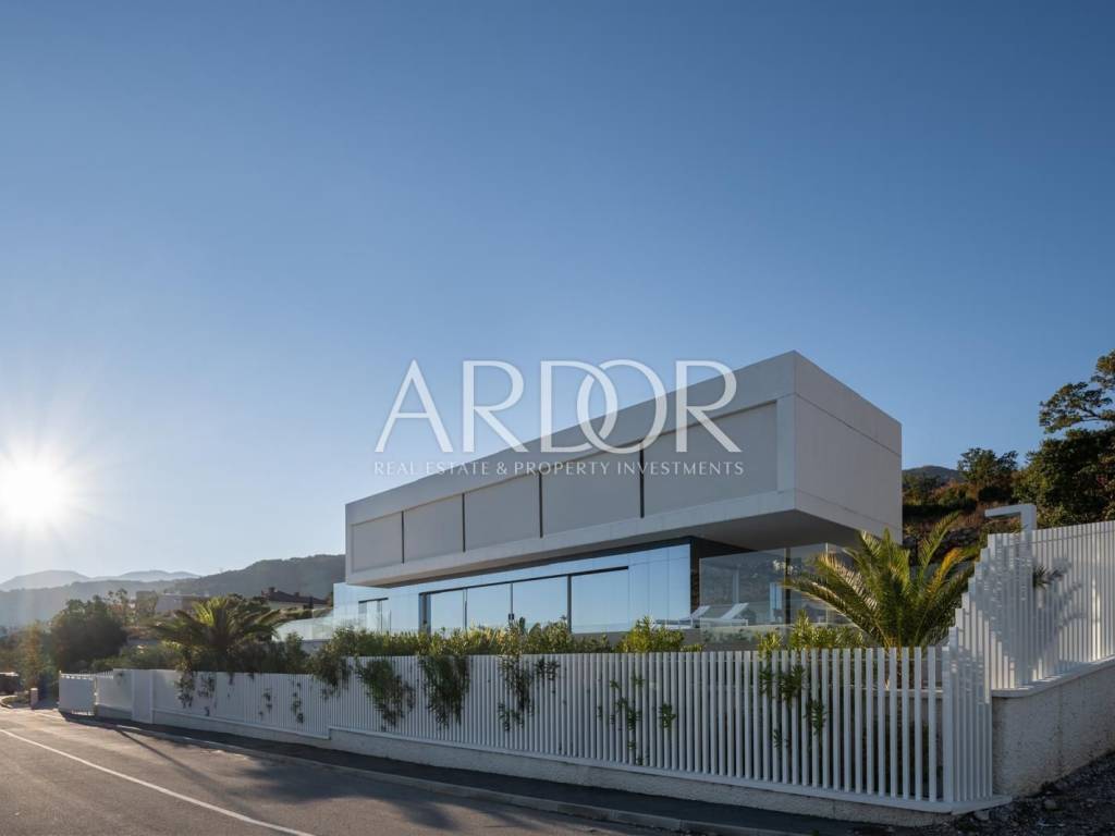 This modern villa offers a total of 380 m² of terraces, a 45 m² infinity pool, and exotic greenery within the private garden, making it unique on the Opatija Riviera. The interior is further enriched by atriums and outdoor sunken spaces in the basement, which are connected to the gym and sauna.