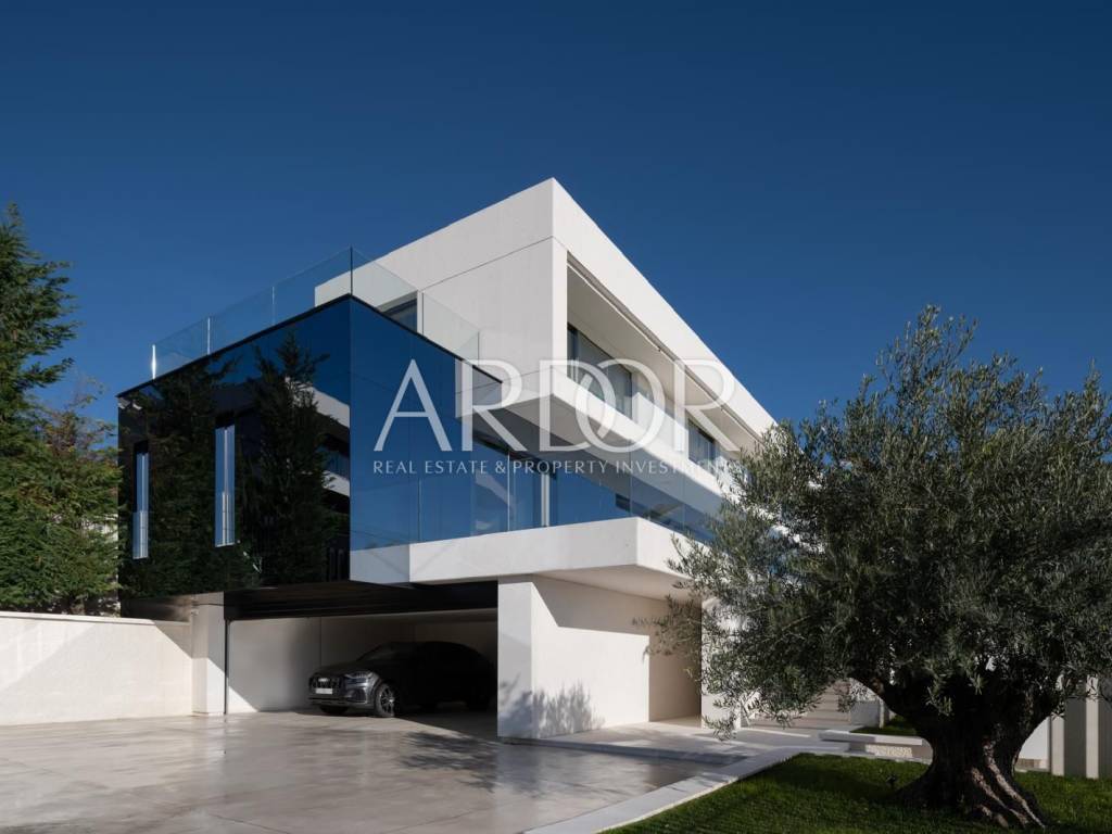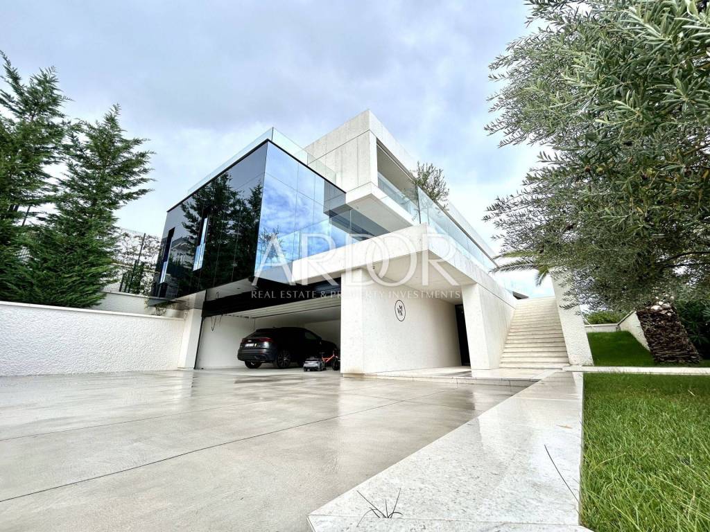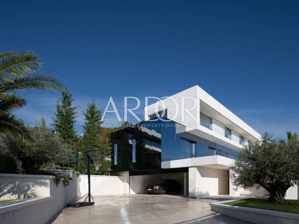 Opatija, we are mediating the sale of an exclusive villa located in close proximity to the center of Opatija, spread over three floors, in a quiet, private street with a garden of 1,000 m². The interior begins with a large garage in the basement, connected by a glass corridor. This space links the utility area for personal belongings, a laundry room, and a spacious entertainment room with a gym, children's playroom, and a Finnish sauna.