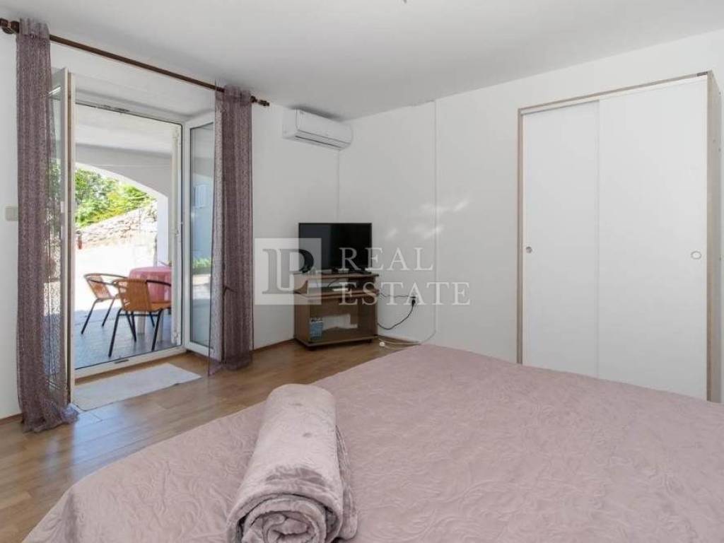 The house consists of three apartments. On the ground floor there are two studio apartments with separate entrances, completely renovated and ready for rent. On the first floor, which can be reached by external stairs, there is a beautiful spacious terrace with a view of the sea and an apartment with two bedrooms and a living room.